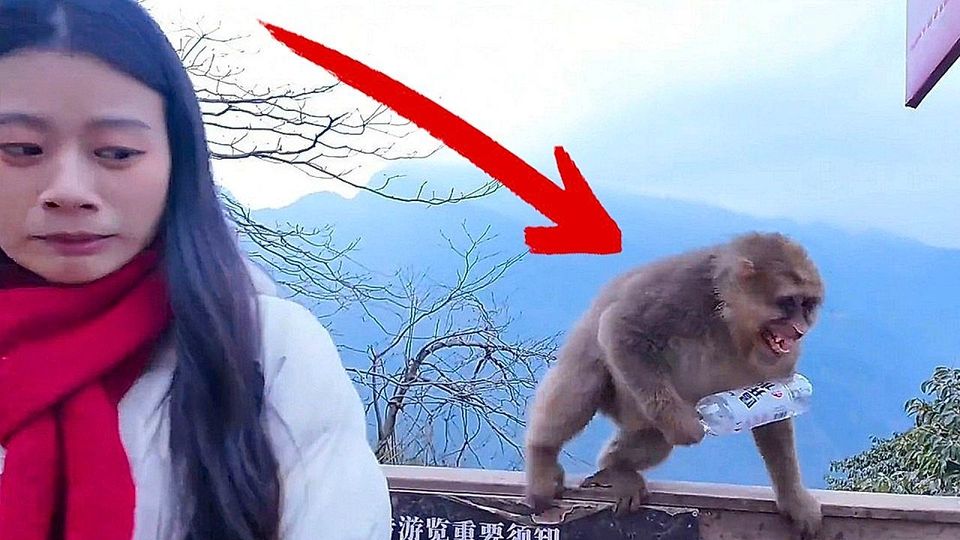 Eine Touristin wollte in der chinesischen Provinz Fujian für ein Foto mit einem Affen posieren. Doch das Tier verlangte eine Gegenleistung.