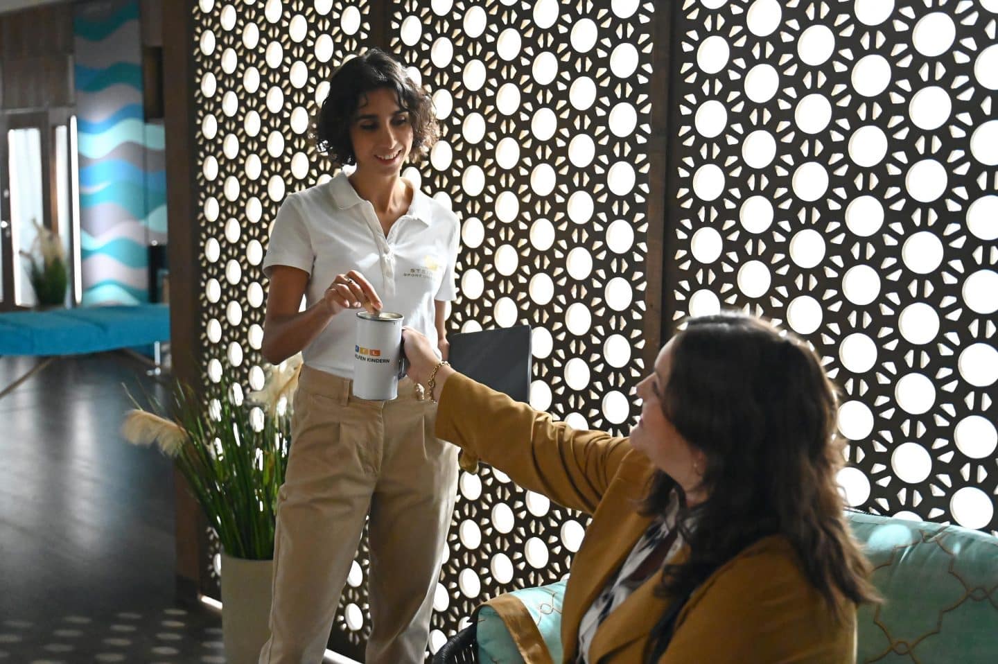 Leyla (Suri Abbassi, l.) echauffiert sich über Elias Egoismus. Rechts Hanna (Sarah Victoria Schalow) +++ Die Verwendung des sendungsbezogenen Materials ist nur mit dem Hinweis und Verlinkung auf RTL+ gestattet. +++