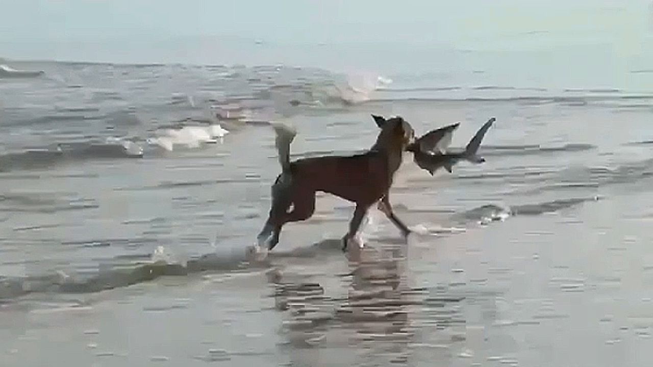Ein Angler auf der Insel K'gari in Australien fing versehentlich einen kleinen Bronzehai – und warf den Fisch wieder ins Meer. Da tauchte ein ungebetener Gast auf und machte seine gute Tat zunichte.