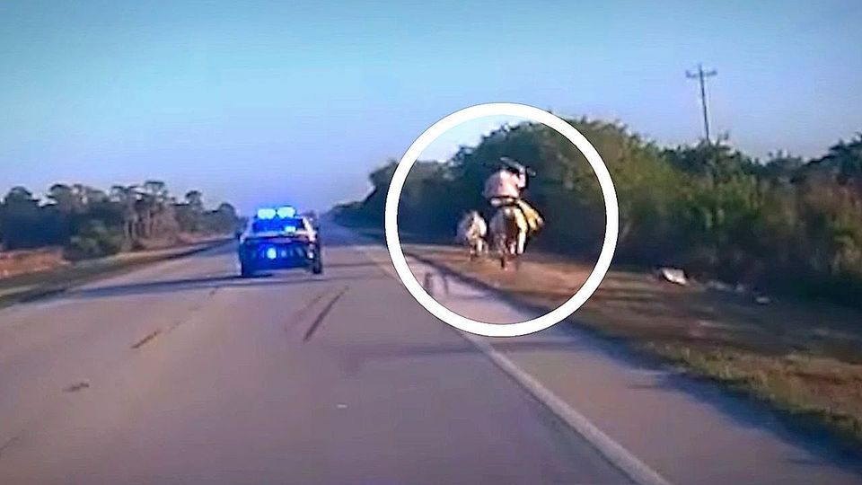 Ungewöhnlicher Polizeieinsatz in Collier County im US-Bundesstaat Florida: Eine ausgebüxte Kuh wanderte auf eine vielbefahrene Straße und brachte den Verkehr zum Erliegen. Der Besitzer schlug schließlich mit einem Lasso zu.