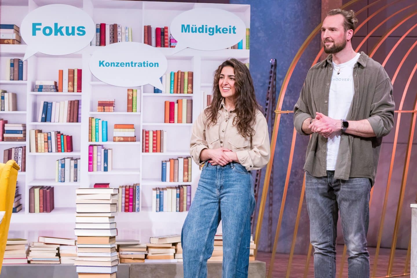 Mana Kakuan und Daniel Nienkämper präsentieren mit Bookhoover ein Lese-Gadget aus dem 3D-Drucker. Sie erhoffen sich ein Investment von 80.000 Euro für 15 Prozent der Firmenanteile. +++ Die Verwendung des sendungsbezogenen Materials ist nur mit dem Hinweis und Verlinkung auf RTL+ gestattet. +++