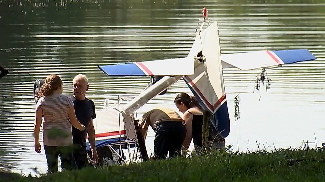 Ein Kleinflugzeug ist in Griswold im US-Bundesstaat Connecticut in einen kleinen See gestürzt. Der Pilot überstand die Bruchlandung unverletzt und gab anschließend sogar ein Interview.