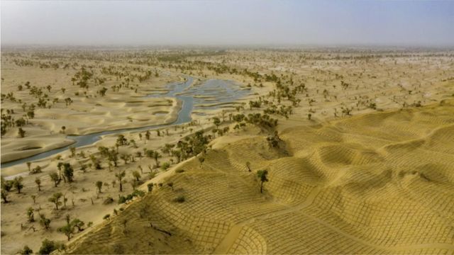 Die Taklamakan ist die zweitgrößte Sandwüste der Welt. Ein milliardenschweres Umweltprojekt verwandelte sie über die Jahrzehnte in eine Art riesigen CO2-Absorber.