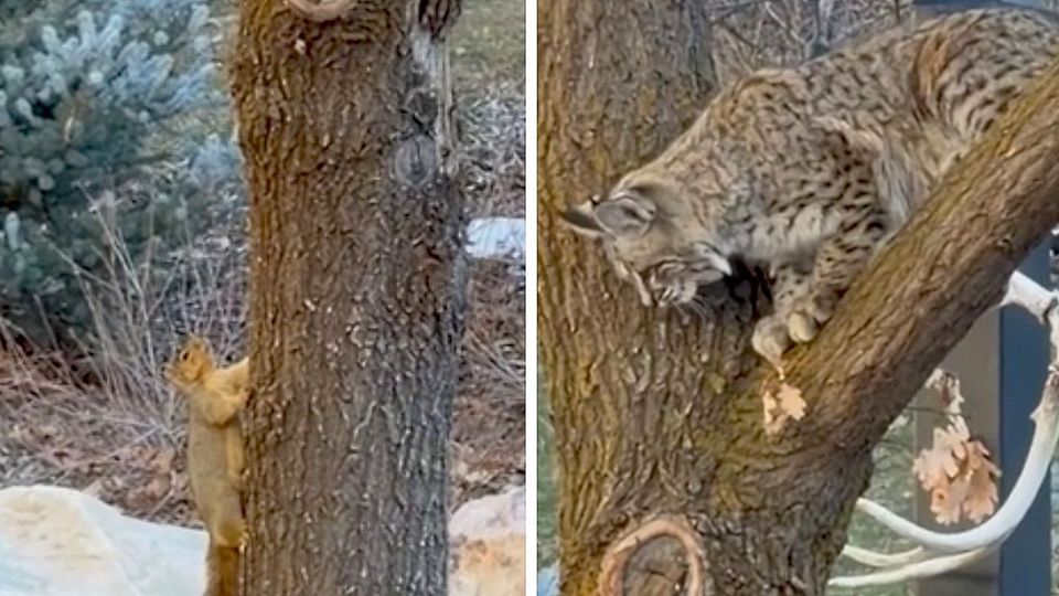 Eine Frau aus Draper im US-Bundesstaat Utah filmte Ende Januar in ihrem Garten eine kuriose Verfolgungsjagd: Ein Rotluchs hatte es auf ein Eichhörnchen auf einem Baum abgesehen – ein Katz-und-Maus-Spiel begann.
