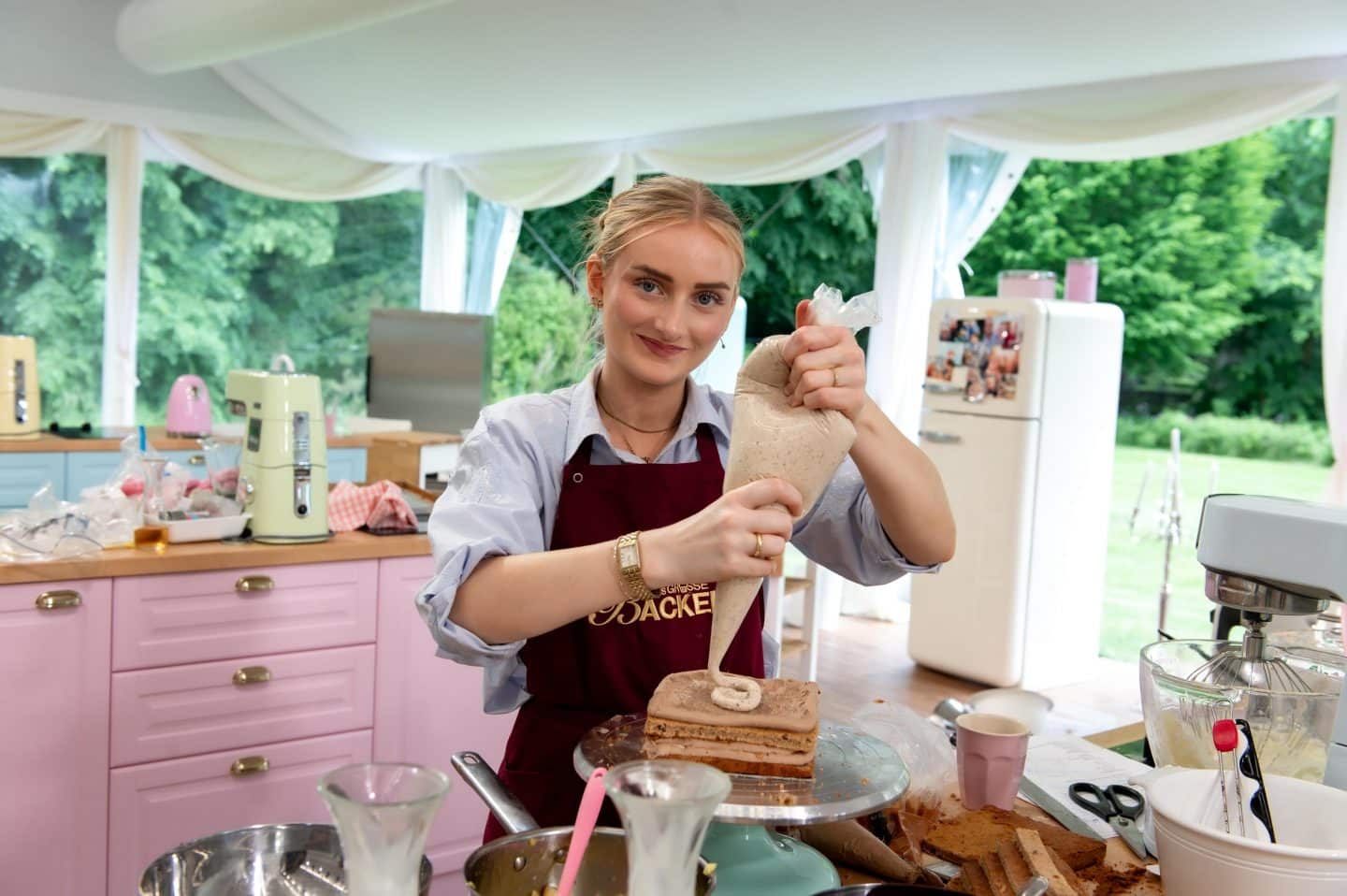 Die Königsdisziplin der Woche brachte das Backzelt an seine Grenzen: ein Gravity Cake. Eine Torte, die wirken sollte, als würde sie schweben – fünf Stunden Zeit, pure Kreativität und viel Nervenstärke.