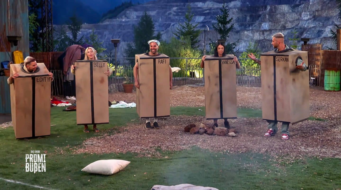 Titel: Das große Promi-Büßen; Staffel: 4; Folge: 1; Person: Edith Stehfest; Bellydah Venosta; Rafi Rachek; Vanessa Brahimi; Serkan Yavuz; Copyright: Joyn; Fotograf: Joyn; Bildredakteur: Isabella Toennes; Dateiname: 3285403.jpg; Rechtehinweis: Dieses Bild darf honorarfrei für redaktionelle Zwecke und nur im Rahmen der Programmankündigung verwendet werden. Andere Veröffentlichungen sind nur nach Rücksprache und ausdrücklicher Genehmigung der Seven.One Entertainment Group GmbH möglich. Nicht für EPG! Verwendung nur mit vollständigem Copyrightvermerk. Das Foto darf nicht verändert, bearbeitet und nur im Ganzen verwendet werden. Es darf nicht archiviert werden. Es darf nicht an Dritte weitergeleitet werden. Aneinanderreihung/Zusammenlegung/Kopplung von Bildern zum Zweck der Erstellung von Slide-Shows o.ä. nicht gestattet; Verbindung/Einfügen/Anfügen von Werbung nicht gestattet. Das Bild kann KI generierte Elemente enthalten. Bei Fragen: [email protected] Voraussetzung für die Verwendung dieser Programmdaten ist die Zustimmung zu den Allgemeinen Geschäftsbedingungen der Presselounges der Sender der Seven.One Entertainment Group GmbH.