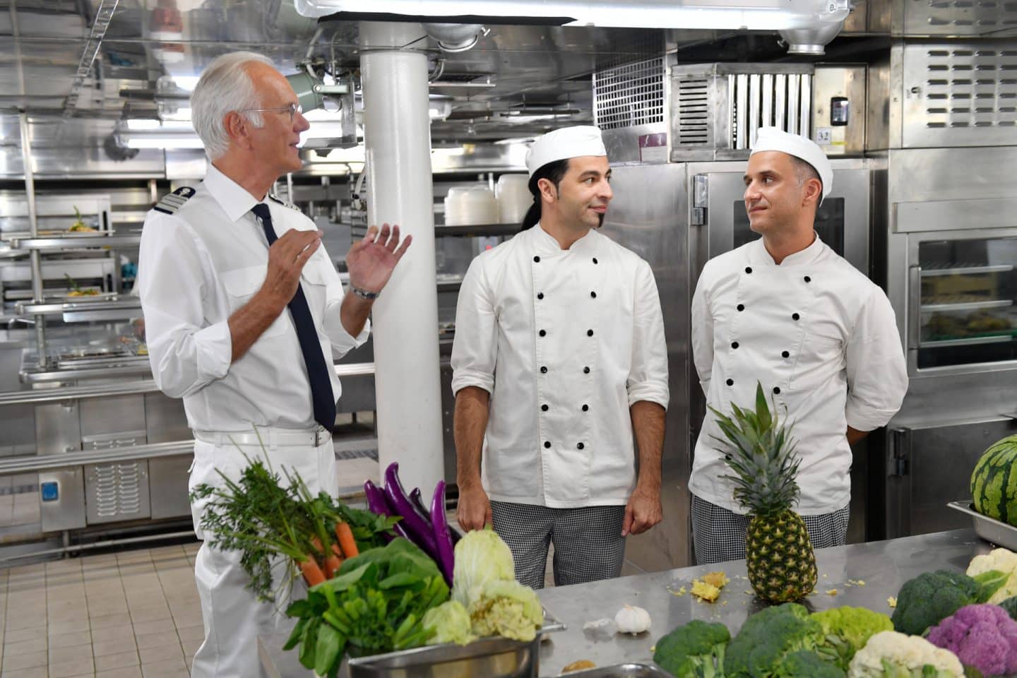 Einzig der Kreuzfahrtdirektor Oskar Schifferle (Harald Schmidt, l.) erkennt das große Potenzial der Brüder Cem (Bülent Ceylan, M.) und Hassan Meierbrink (Özcan Cosar, r.) und will sie auf der Showbühne auftreten lassen.