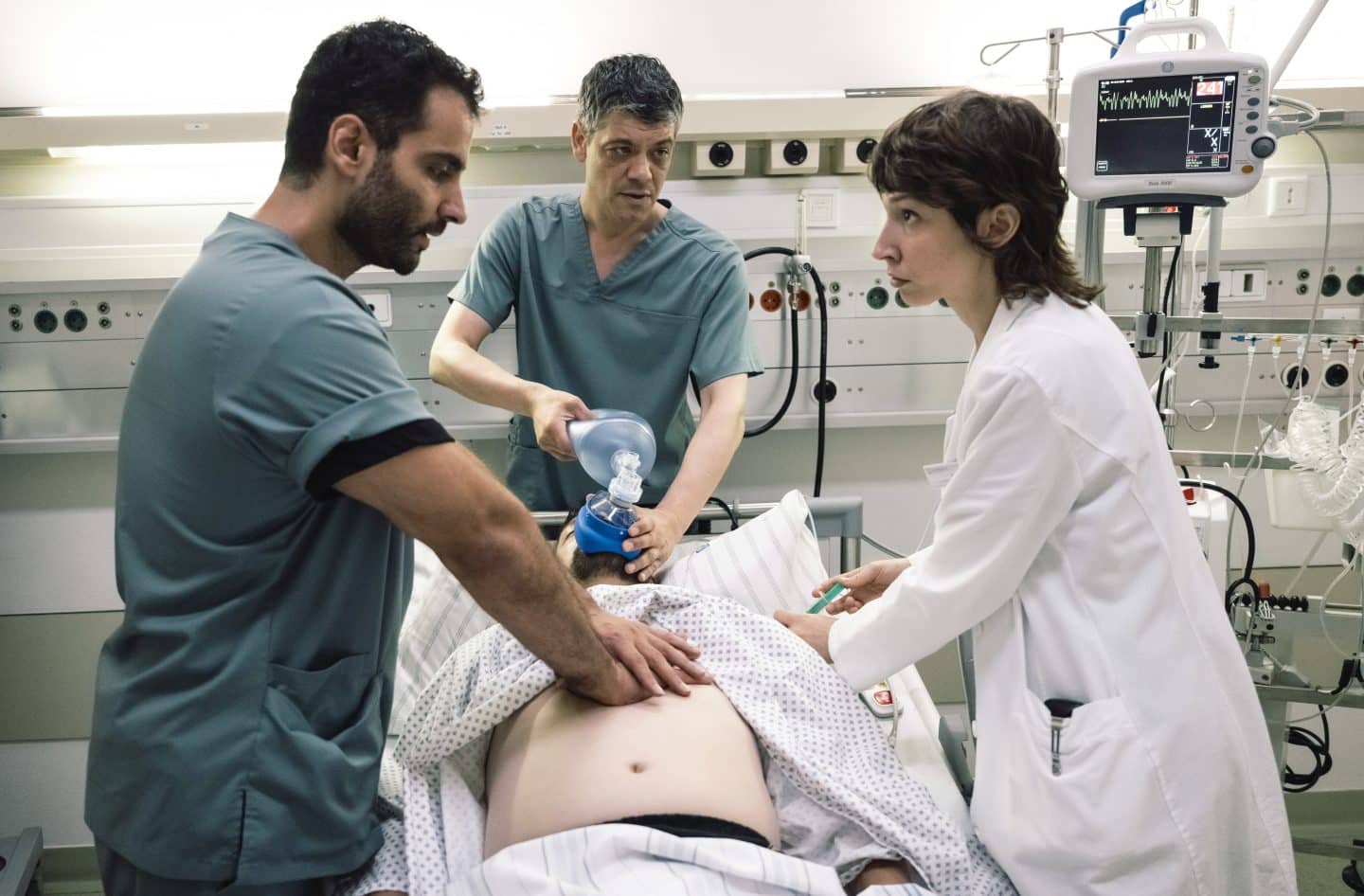 ARD/WDR DAVID UND GOLIATH (2), „Wahrheit oder Pflicht“, am Mittwoch (01.10.25) um 20:15 Uhr im ERSTEN. Rana Mousavi (Amina Merai, r) versucht mit Dr. Robert Schultholz (Carlo Ljubek, M) und Adem Kosar (Sohel Altan Gol, l) einen Patienten wiederzubeleben. © WDR/Martin Rottenkolber, honorarfrei – Verwendung gemäß der AGB im engen inhaltlichen, redaktionellen Zusammenhang mit genannter WDR-Sendung bei Nennung „Bild: WDR/Martin Rottenkolber“ (S2+). WDR Kommunikation/Redaktion Bild, Köln, Tel: 0221/220 -7132 oder -7133, Fax: -777132, [email protected]