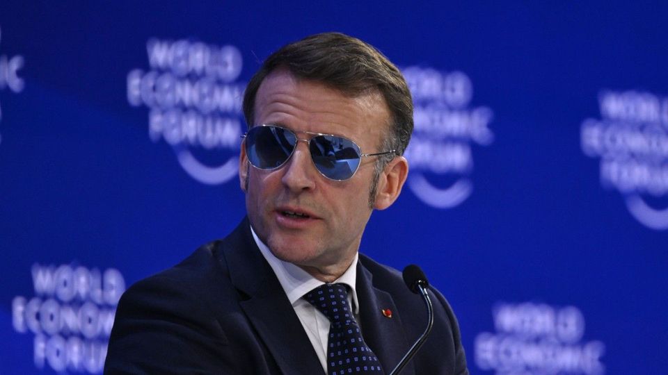 Frankreichs Präsident Emmanuel Macron sorgt mit seiner Sonnenbrille beim Weltwirtschaftsforum in Davos für Schlagzeilen. Die Pilotenbrille trug er wegen einer Augenentzündung. Donald Trump nahm den Auftritt dennoch zum Anlass für Spott.