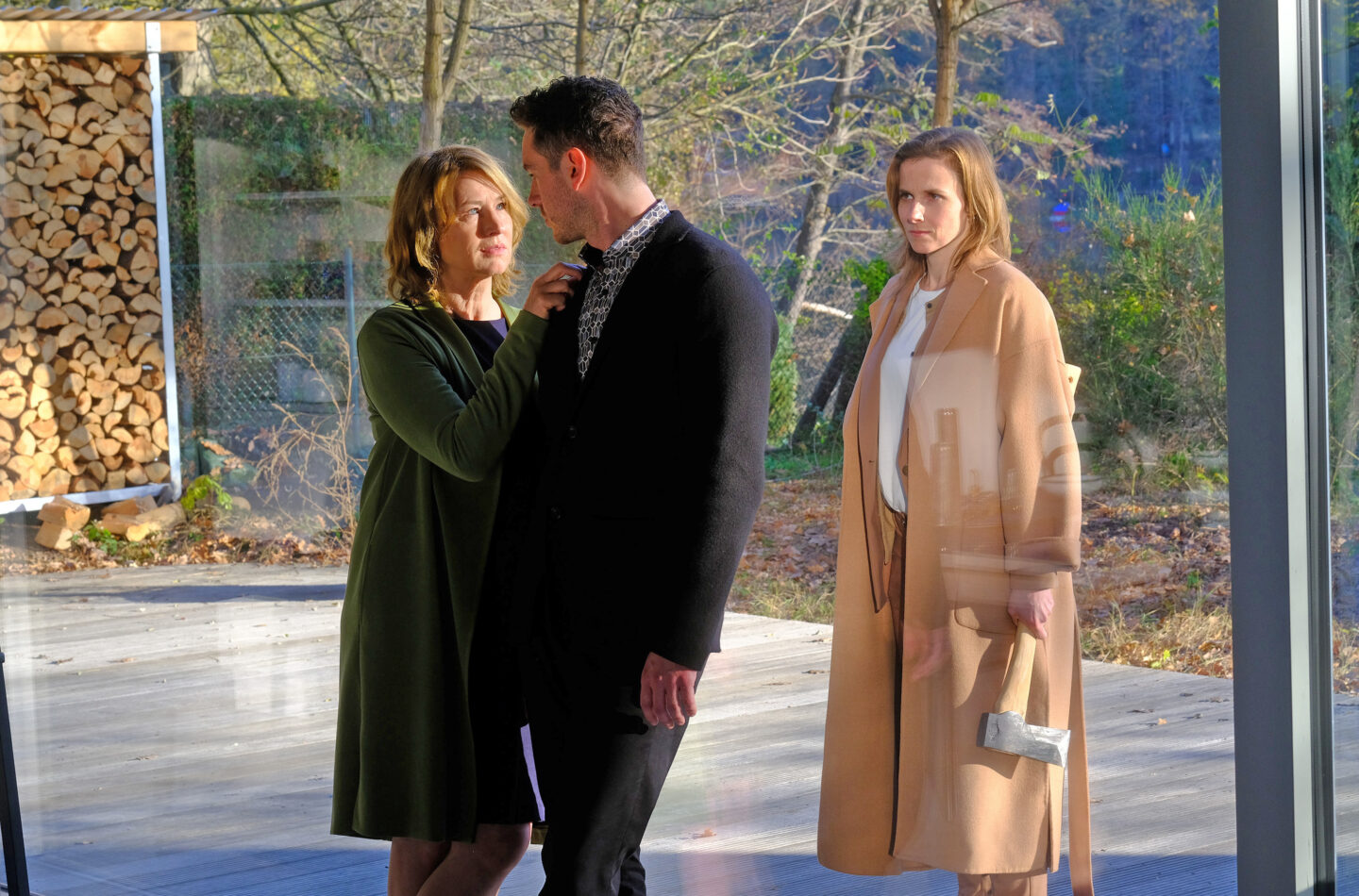 Henriette (Corinna Harfouch, li.) hat ihre Tochter Johanna (Karin Hanczewski) eingeladen. Dabei aber nicht erwähnt, dass sie ihr ihre neue Liebe Philipp (Louis Nitsche, Mi.) vorstellen will.