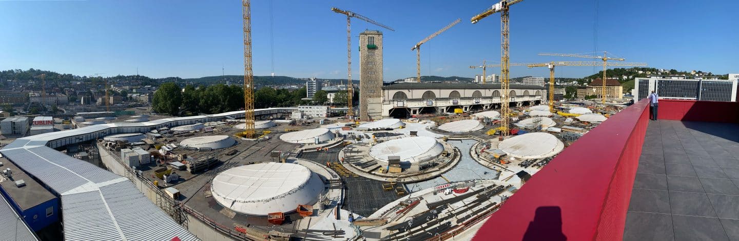 Der Fußweg bietet Ansichten, die man sonst nur aus Bergregionen kennt – allerdings in einer urbanen Baustellen-Version. Tiefe Baugruben erinnern an künstliche Canyons, futuristische Betonkelche ragen aus der Tiefe, und an manchen Stellen führt der Weg in schwindelerregender Höhe über provisorische Stahlstege.