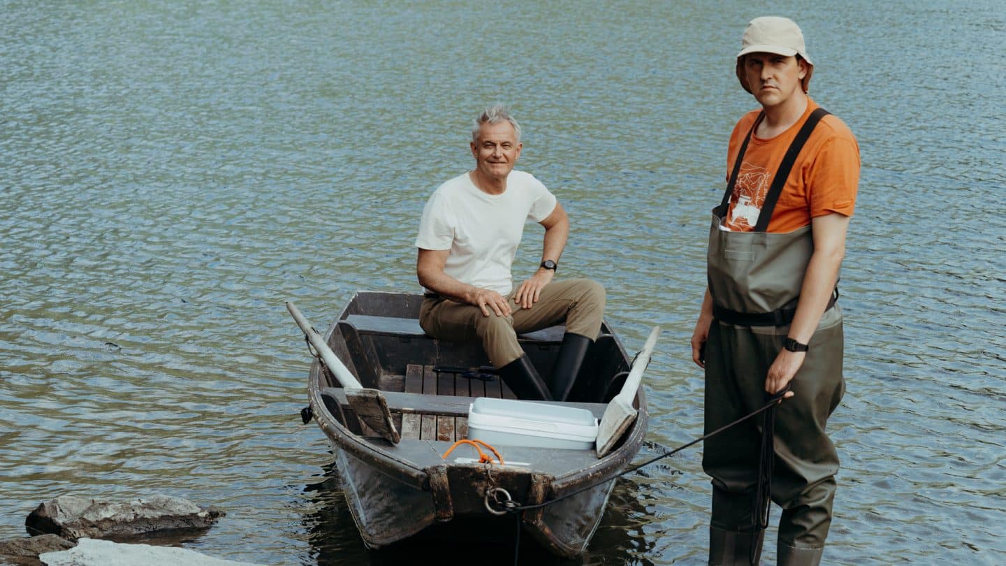 Michael Dörfler (Robert Lohr, l.) und Rudi (Michael Pascher, r.) sind bereit für das Teamevent.