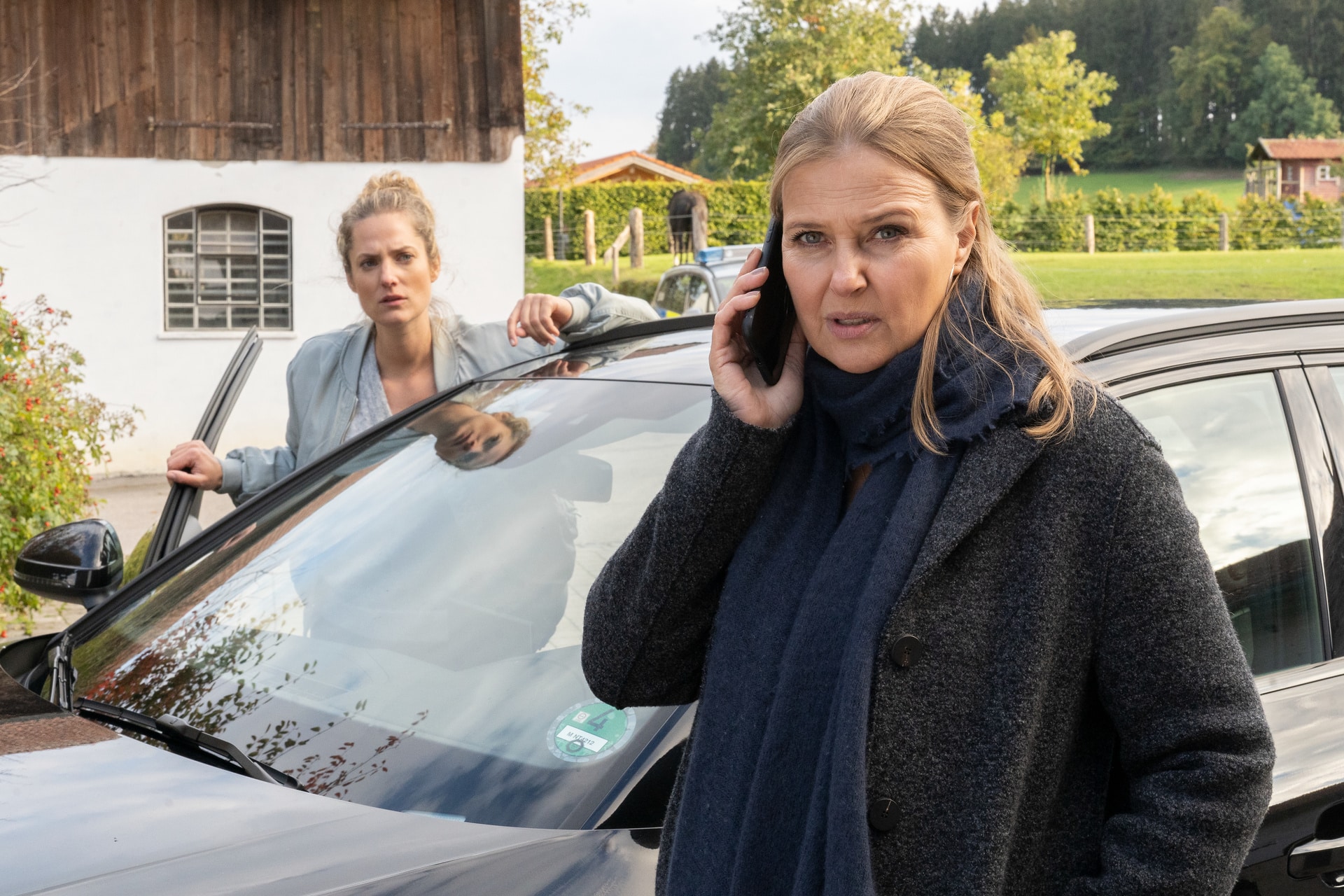 Vera Lanz (Katharina Böhm) spricht mit der Familie des Bauern Mangfall über die erhaltenen Drohbriefe.