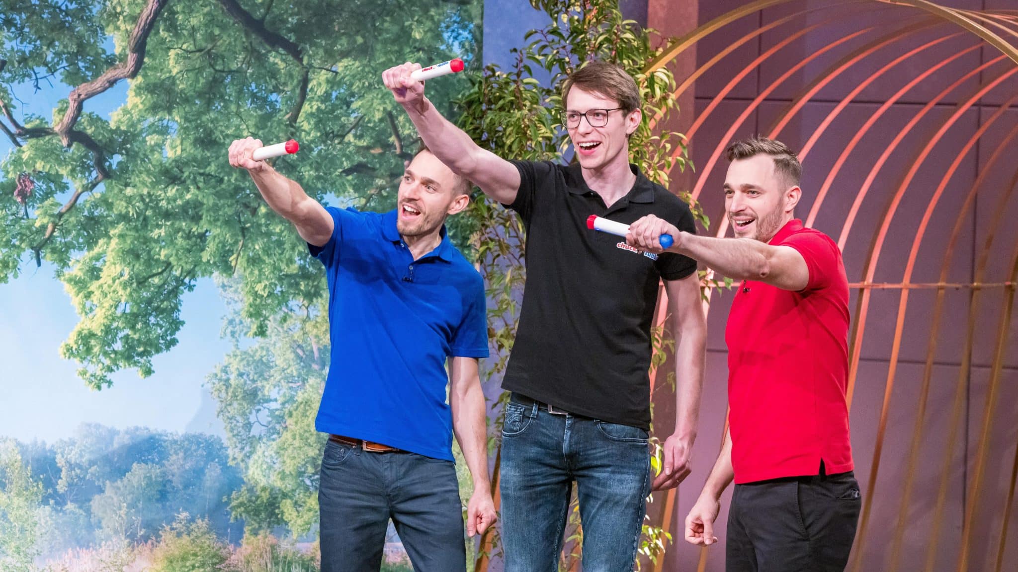 Die Idee entstand durch ein Spiel von Joko & Klaas. „Wir wollten ein Spielzeug entwickeln, das einfach Spaß macht, aber auch motorische Fähigkeiten fördert – für drinnen und draußen, für Jung und Alt. Der ChuckaRubba verbindet genau das“, erklärt das Gründer-Trio. Für die Serienproduktion und den Markteintritt benötigen sie 100.000 Euro und bieten dafür 30 Prozent ihrer Firmenanteile an. Können sie die Löwen zum Spielen verführen?