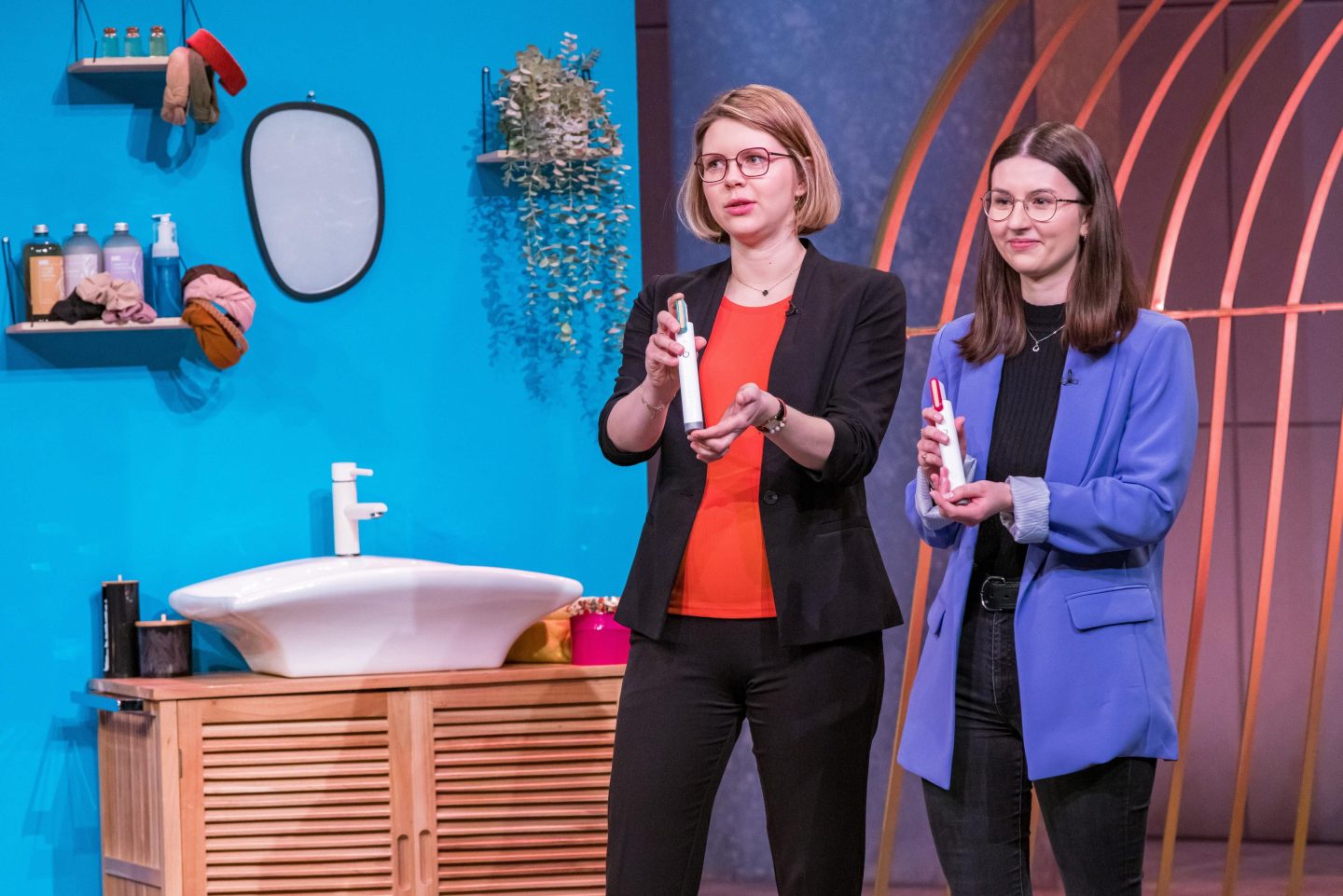 Dr. Friederike Kogelheide (l.) und Benita Botterhuis präsentieren mit Glim Skin ein Plasmabasiertes Hautpflegegerät. Sie erhoffen sich ein Investment von 300.000 Euro für 10 Prozent der Firmenanteile. +++ Die Verwendung des sendungsbezogenen Materials ist nur mit dem Hinweis und Verlinkung auf RTL+ gestattet. +++