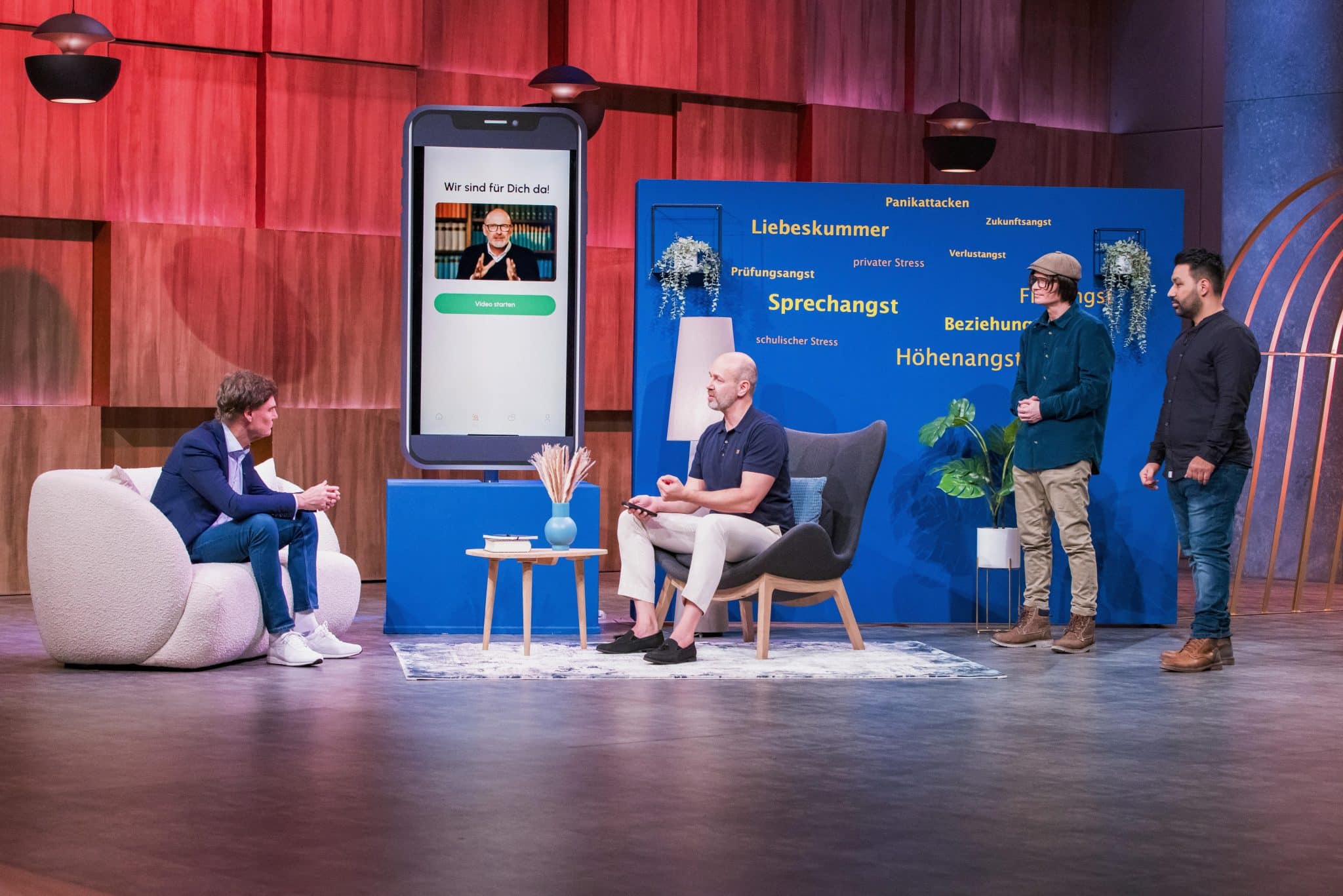 - Soulfi aus Hamburg: Ciro Paolo D`Andrea, Thomas Bolz und Eray Özmü haben eine App für psychologische Soforthilfe entwickelt. „Jeder zweite Erwachsene der Welt leidet unter seelischem Druck, Stress und psychischen Schmerzen“, erklärt Gründer und Psychologe Paolo. Die App bietet Video-Übungen, Atemtechniken und KI-gestützte Begleitung. „Wir sind die erste Hilfe bei mentalen Problemen“, so Tom. Carsten Maschmeyer teilt eine persönliche Erfahrung: „Gegen hohe Umsätze habe ich nichts. Aber hohe Gebäude? Katastrophe!“ Er testet die App live im Studio. Die Gründer wollen 200.000 Euro für 15 Prozent.