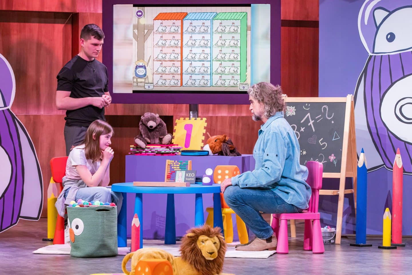 Investor Nils Glagau unterzieht mit Sophie den Interaktiven Lernbegleiter TukToro direkt dem Praxistest. Links Andreas Häring, einer der Gründer.+++ Die Verwendung des sendungsbezogenen Materials ist nur mit dem Hinweis und Verlinkung auf RTL+ gestattet. +++