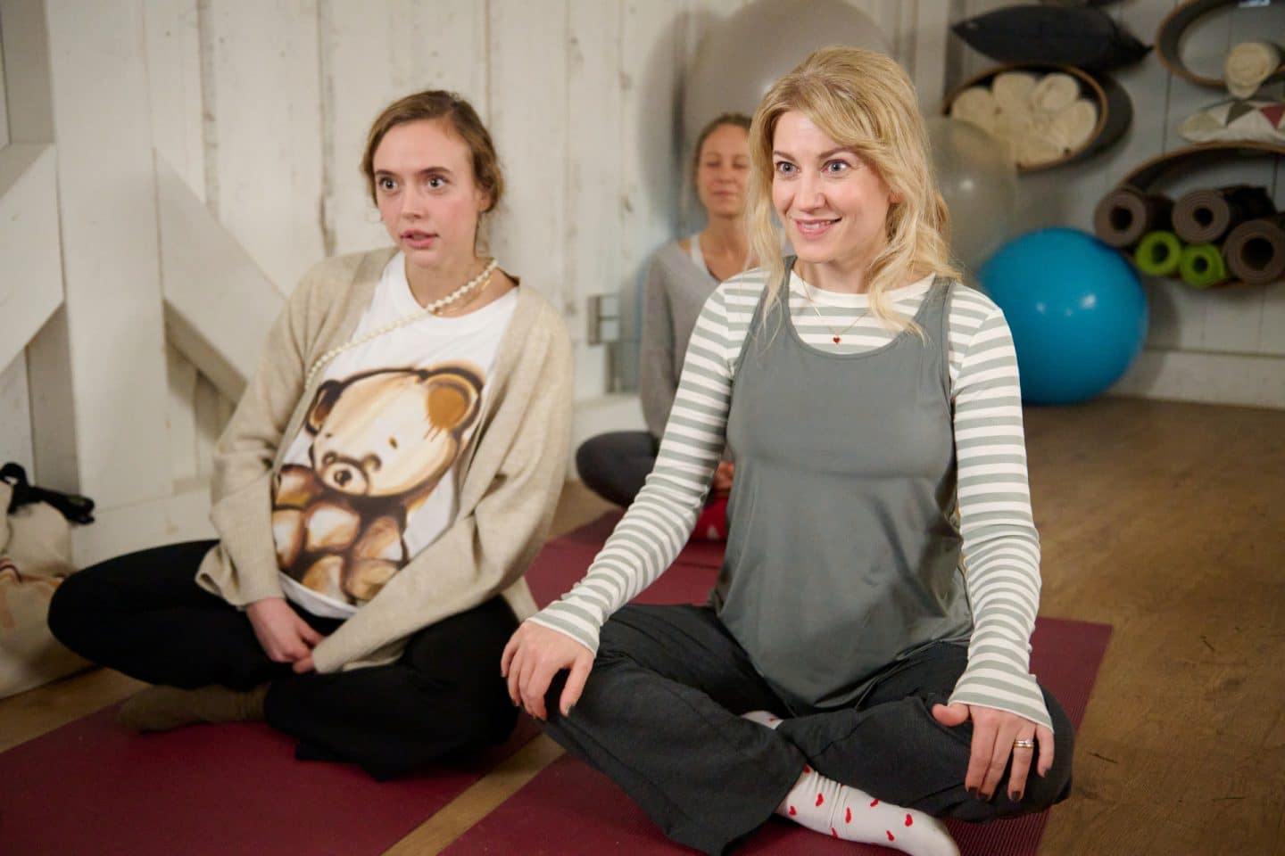 Beeinflusst von den sozialen Medien diskutieren Elli Vierhauser (Rachel Brings) und Clara Schuster (Julienne Pfeil) im Geburtsvorbereitungskurs das Thema der Hausgeburt ohne medizinische Unterstützung durch eine Hebamme.