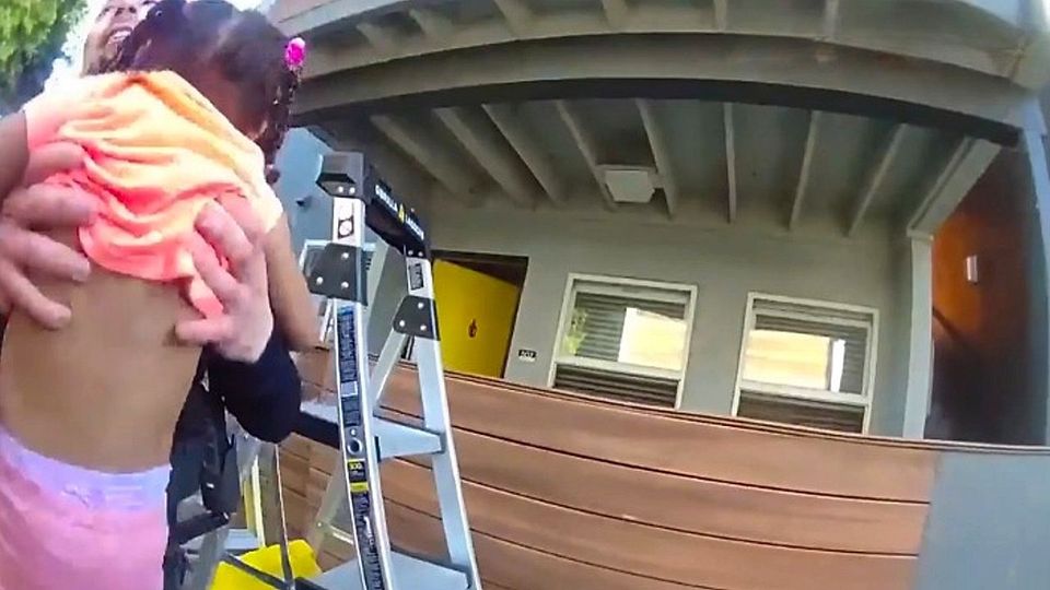 Dramatischer Polizeieinsatz in Milpitas im US-Bundesstaat Kalifornien: Eine Wohnung brannte, die Familie steckte im ersten Stock fest. Die Eltern ließen ihre dreijährige Tochter und den Hund vom Balkon in die Arme der Beamten fallen, bevor sie selbst gerettet wurden.