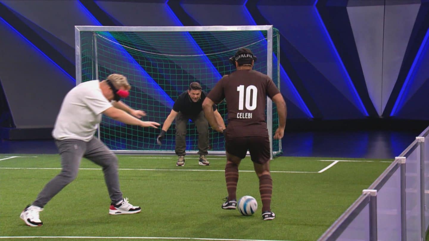 Auch der einzige klare Sieg des Abends hatte einen schalen Beigeschmack. Beim Blindenfußball trat Serdal Celebi – bekannt als „Messi des Blindenfußballs“ – allein gegen das Promi-Team an, das allerdings einen sehenden Torwart einsetzen durfte. Celebi zeigte beeindruckende Technik, traf zweimal – doch Elton nutzte die Regel-Lücke gnadenlos aus und traf dreimal ins leere Tor.