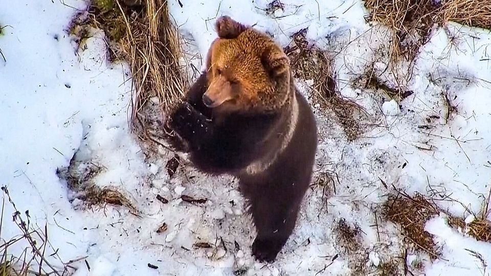 Besondere Augenblicke filmte eine Drohne letztes Wochenende nahe der Stadt Tartu in Estland. Das Fluggerät war auf der Suche nach einer vermissten Person, entdeckte aber stattdessen einen Bären beim Herumtollen im Schnee. Das Tier war gerade aus seinem Winterschlaf erwacht.