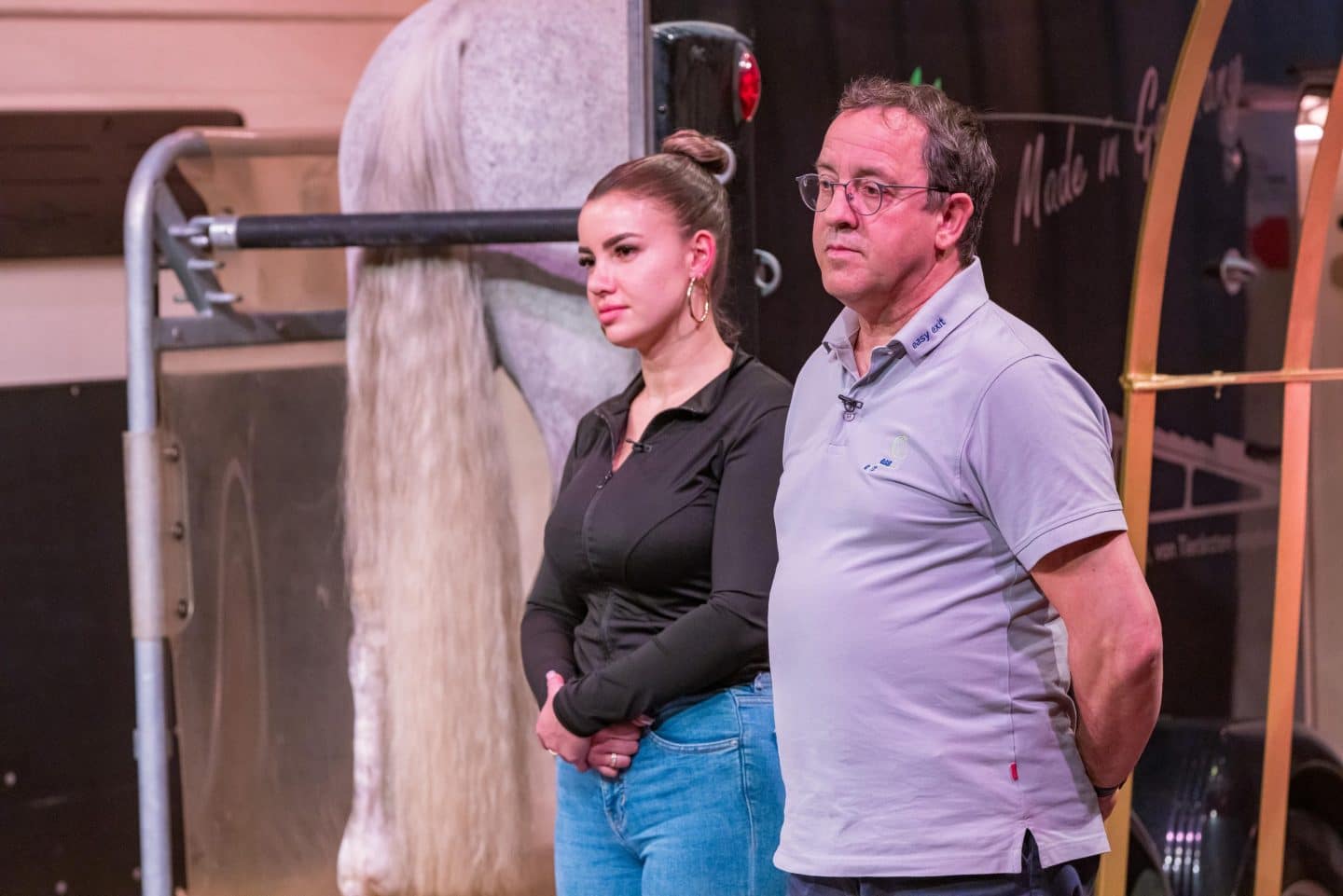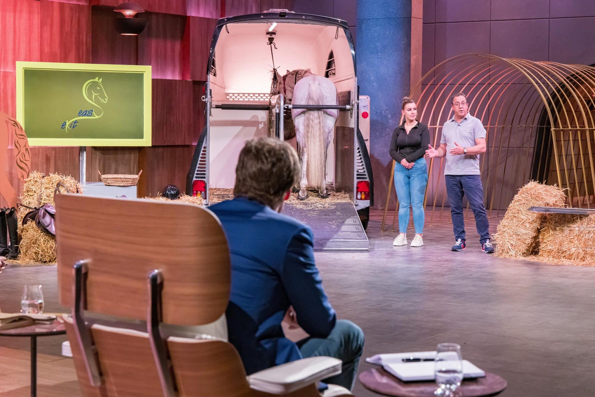 Anna und Michael Schnurbach präsentieren die Verladevorrichtung für Pferdeanhänger Easy Exit. Sie erhoffen sich ein Investment von 50.000 Euro für 10 Prozent der Firmenanteile. +++ Die Verwendung des sendungsbezogenen Materials ist nur mit dem Hinweis und Verlinkung auf RTL+ gestattet. +++