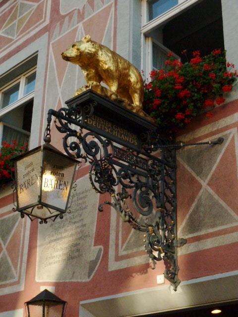 Der „Rote Bären“ war mehr als ein Gasthaus: Er diente als Zunfthaus der Schuster, war Heimat für rund 200 Pferde in seinen Stallungen, beherbergte Reisende, Händler und Adelige. Im Laufe der Zeit wurde das ursprüngliche romanisch-gotische Haus in ein stattliches Renaissancegebäude umgewandelt – nach dem Rückzug der französischen Truppen 1744 sogar teilweise neu errichtet.