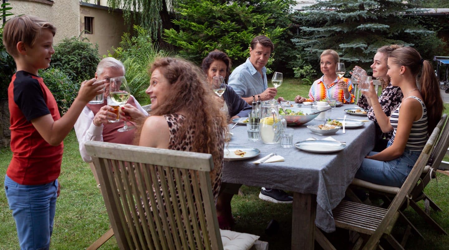 ARD Degeto EINSPRUCH, SCHATZ! – HERZENSWÜNSCHE, am Freitag (28.03.25) um 20:15 Uhr und um 01:45 Uhr im ERSTEN, online first ab Freitag (21.03.25) in der ARD MEDIATHEK Die neue Haushaltshilfe ist für die Patchworkfamilie eine Bereicherung (v.l.n.r.): Tim (Maximilian Brunn), Werner (Jochen Busse), Olga (Anja Antonowicz), Gisela (Tatja Seibt), Hanno (Wolfram Grandezka), ), Eva (ChrisTine Urspruch), Neil (Edgar Emil Garde) und Lili (Lola Höller). © ARD Degeto Film/Erik Steingroever, honorarfrei – Verwendung gemäß der AGB im engen inhaltlichen, redaktionellen Zusammenhang mit genannter Degeto-Sendung und bei Nennung „Bild: ARD Degeto Film/Erik Steingroever“ (S2+). ARD Degeto/Programmplanung und Presse, Tel: 069/1509-335, [email protected]