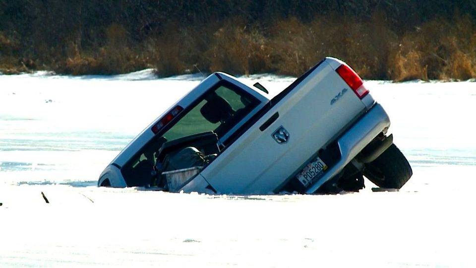 Ein Pick-up-Fahrer im US-Bundesstaat Wisconsin steuerte seinen Wagen auf den zugefrorenen Lake Onalaska. Doch das Eis hielt nicht.