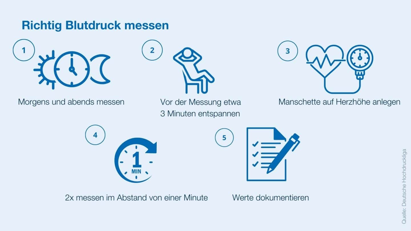 Dr. Karl-Heinz Henn betont daher: „Es ist wichtig, den Blutdruck regelmäßig zu kontrollieren – auch wenn man sich gesund fühlt. Nach den aktuellen Leitlinien der europäischen Gesellschaft für Kardiologie gelten bereits Werte von 120 bis 139 zu 70 bis 89 mmHg als erhöht. Ab Werten von 140/90 mmHg oder darüber liegt eine Hypertonie vor, die behandelt werden sollte.“ Bei konstant erhöhten Werten über mehrere Messungen hinweg ist eine Langzeitmessung über 24 Stunden ratsam. Ein gesunder Lebensstil kann helfen, den Blutdruck zu vermeiden, zu kontrollieren oder zu senken. Zusätzlich stehen wirksame Medikamente zur Verfügung. (Infografik-Tipp: Achten Sie auf die richtige Messtechnik beim Blutdruckmessen!)