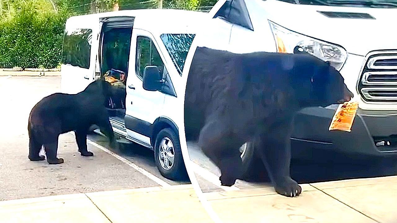Eine Familie wollte in Gatlinburg im US-Bundesstaat Tennessee an ihrem Ferienhaus den Wagen ausladen – da tauchte ein ungebetener Gast auf: Ein hungriger Schwarzbär hatte es auf Schweinekrusten abgesehen.