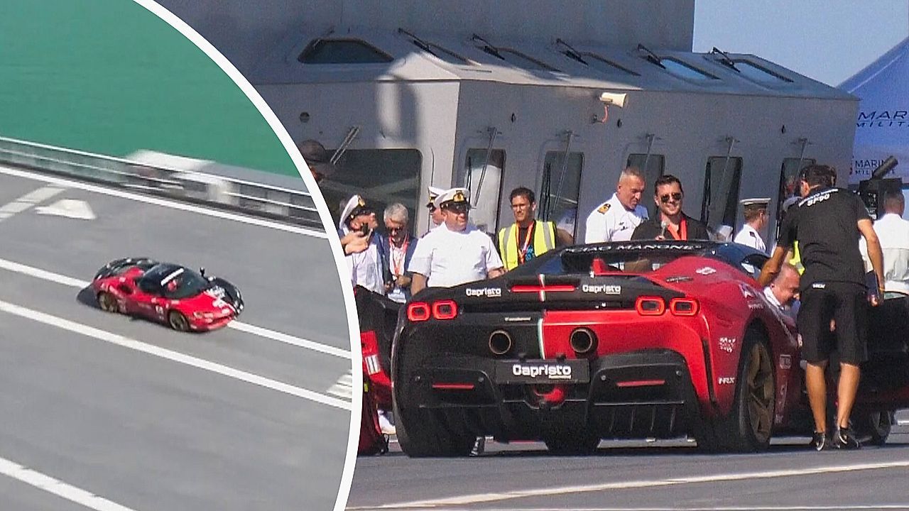 Zu Höchstleistungen brachte Rennfahrer Fabio Barone am Donnerstag einen Ferrari SF90 auf dem Deck eines Flugzeugträgers. Der Italiener wollte mit dem Supersportwagen einen eigenen Weltrekord brechen – und musste dafür hart am Limit bremsen.
