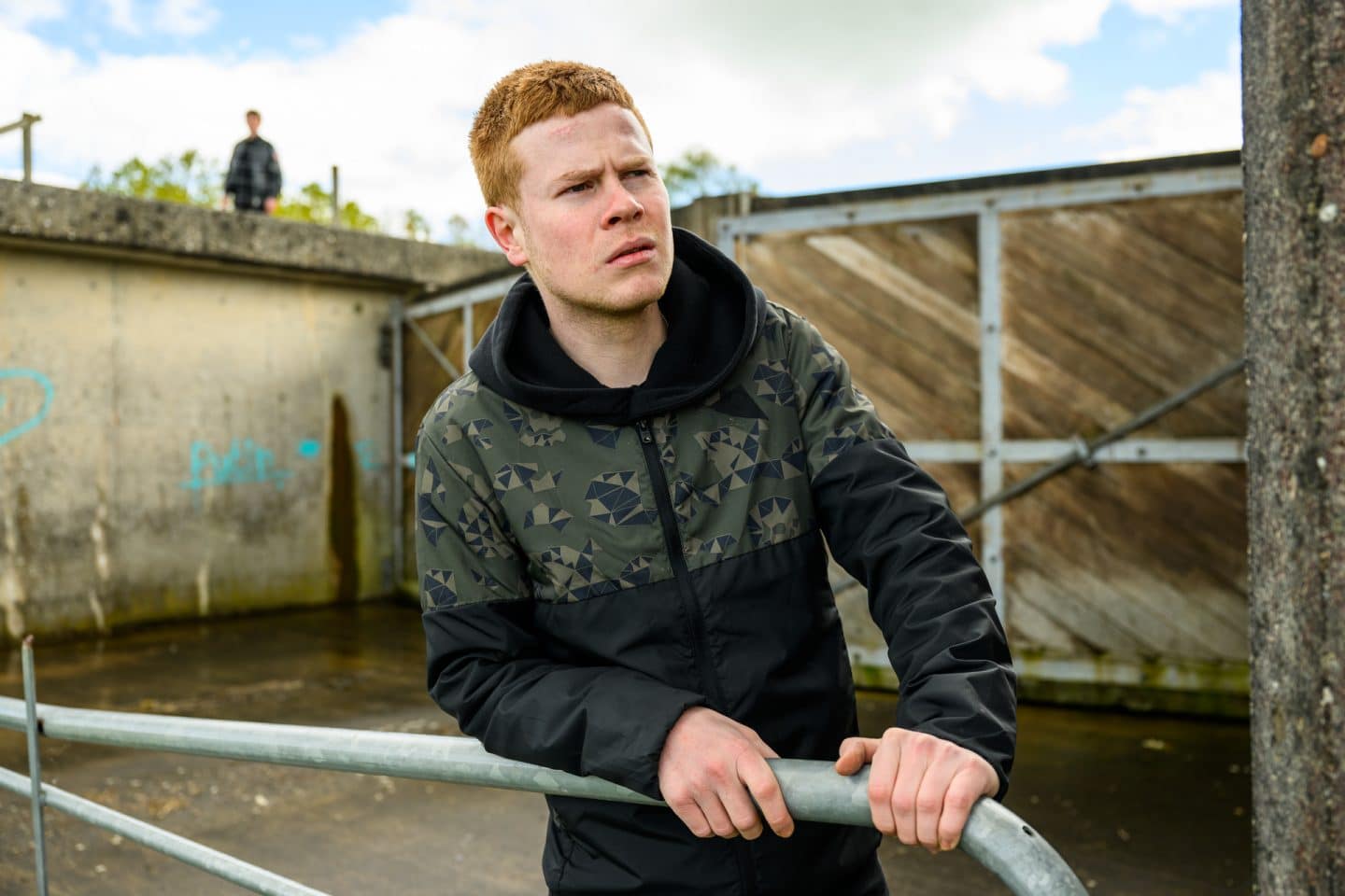 Jannick Vermeulen (Leon Seidel, r.) horcht in die Ferne, während Polizist Henk Cassens (Maxim Mehmet, l.) im Hintergrund lauert. Wer beobachtet hier eigentlich wen?