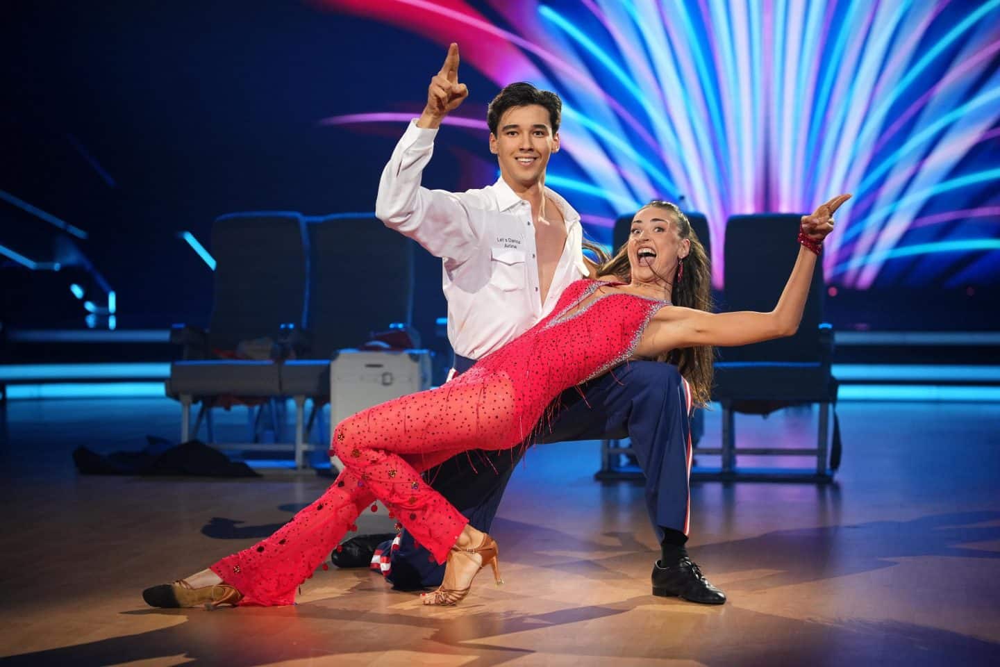 Fabian Hambüchen und Anastasia Maruster tanzen Cha Cha Cha. +++ Die Verwendung des sendungsbezogenen Materials ist nur mit dem Hinweis und Verlinkung auf RTL+ gestattet. +++
