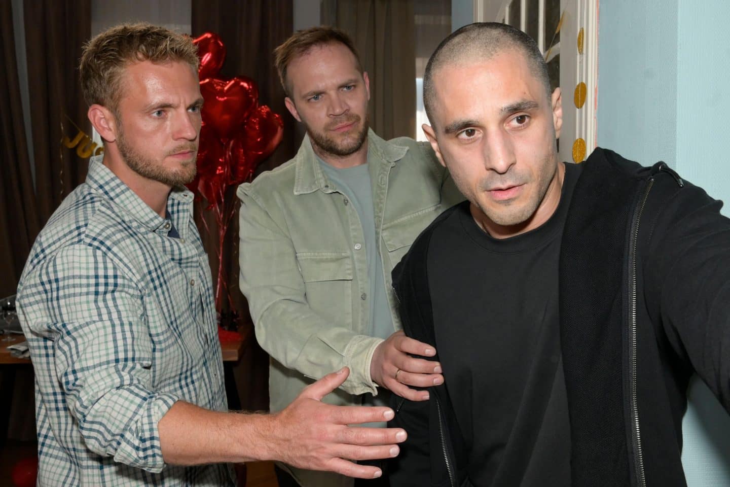 Paul (Niklas Osterloh, l.) und Erik (Patrick Heinrich) tut es leid, was Tobias durchmachen muss. +++ Die Verwendung des sendungsbezogenen Materials ist nur mit dem Hinweis und Verlinkung auf RTL+ gestattet. +++