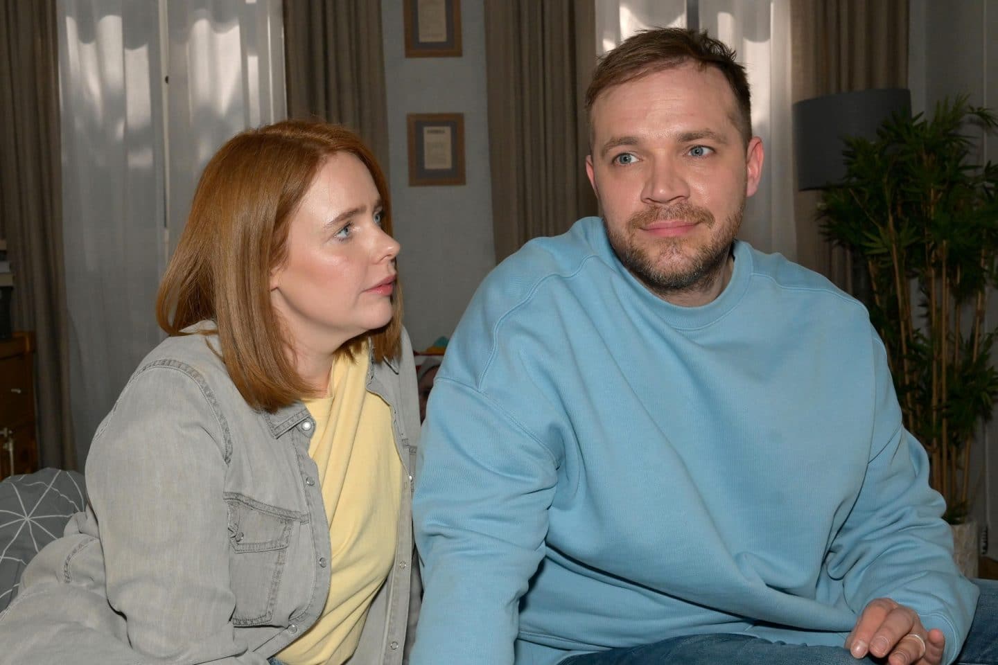 Erik (Patrick Heinrich) würde sich freuen, wenn Toni (Olivia Marei) seinen Namen annimmt. +++ Die Verwendung des sendungsbezogenen Materials ist nur mit dem Hinweis und Verlinkung auf RTL+ gestattet. +++