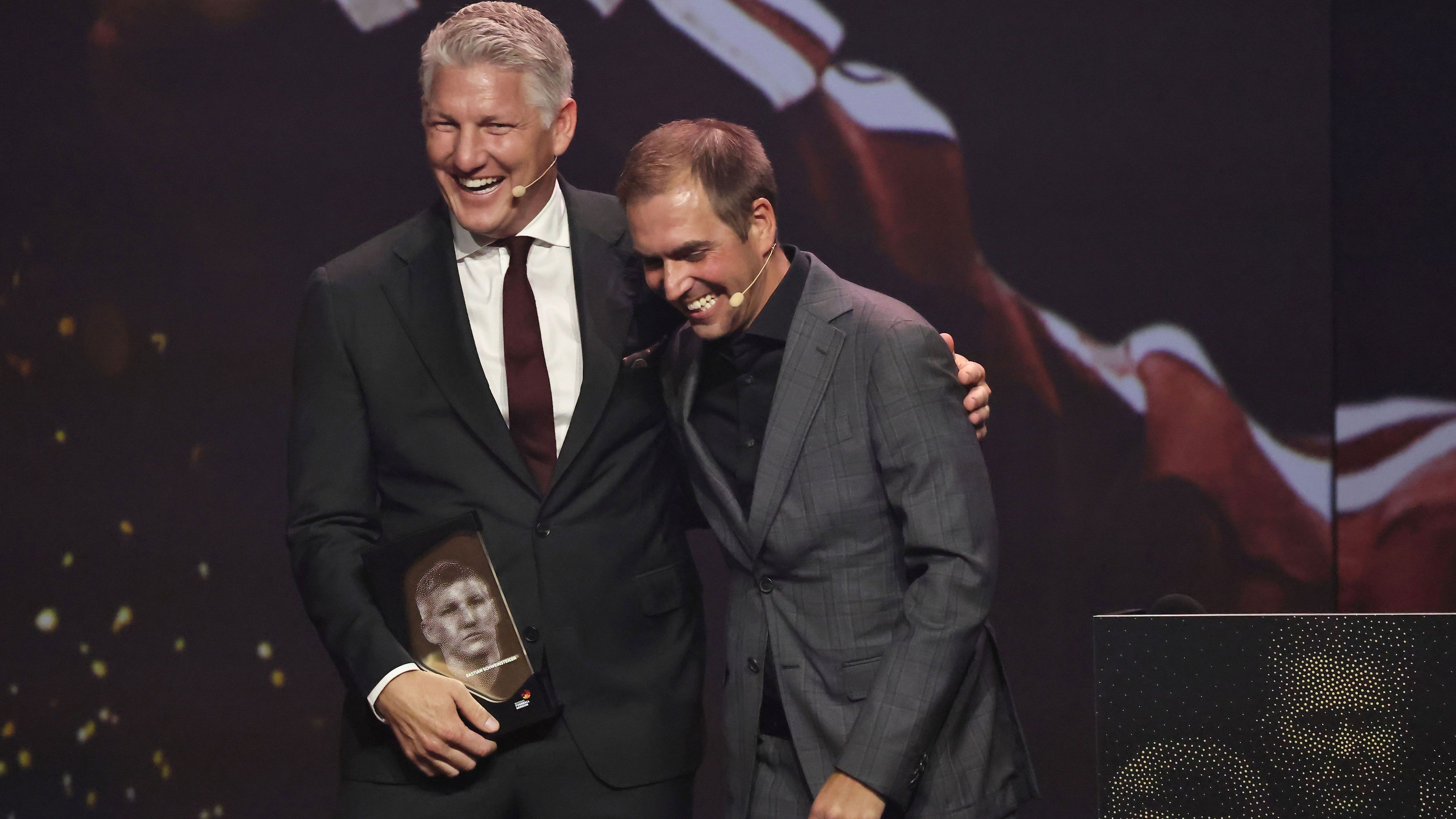 Auf der Gala der Hall of Fame des deutschen Fußballs wird Bastian Schweinsteiger geehrt. Philipp Lahm hält eine bewegende Laudatio auf den Weltmeister.