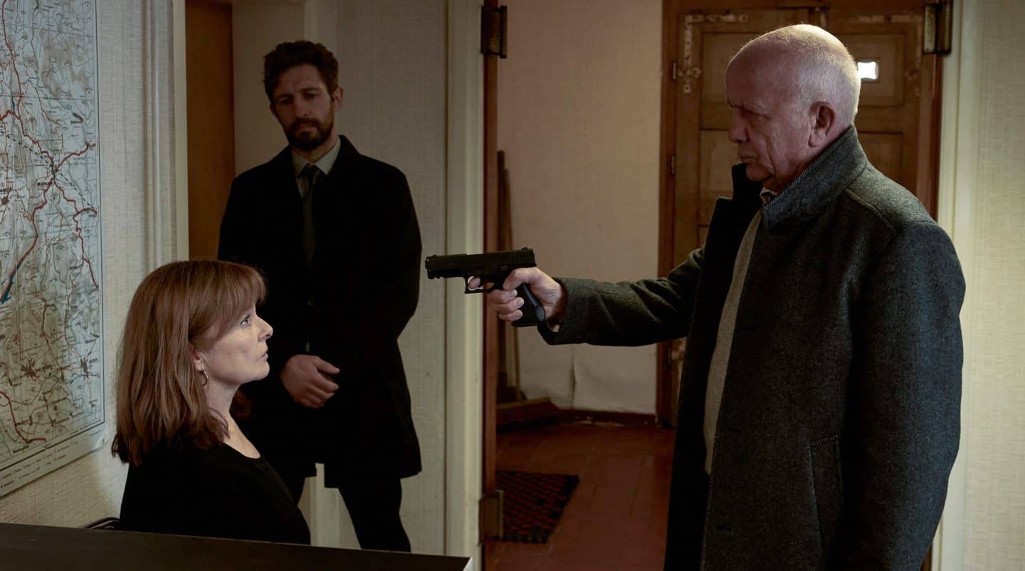 ARD Degeto HARTER BROCKEN: DER GOLDRAUSCH, am Samstag (14.06.25) um 20:15 Uhr und um 01:15 Uhr im ERSTEN. Auch Posnanski (Damien Murphy, Mitte) und Oberst Keil (Christian Grashof, re.) vom Verfassungsschutz sind hinter der ehemaligen Stasi-Agentin Inka Sassner (Lina Wendel, li.) her. © ARD Degeto/Kai Schulz, honorarfrei – Verwendung gemäß der AGB im engen inhaltlichen, redaktionellen Zusammenhang mit genannter Degeto-Sendung und bei Nennung „Bild: ARD Degeto/Kai Schulz“ (S2+). ARD Degeto/Programmplanung und Presse, Tel: 069/1509-335, [email protected]