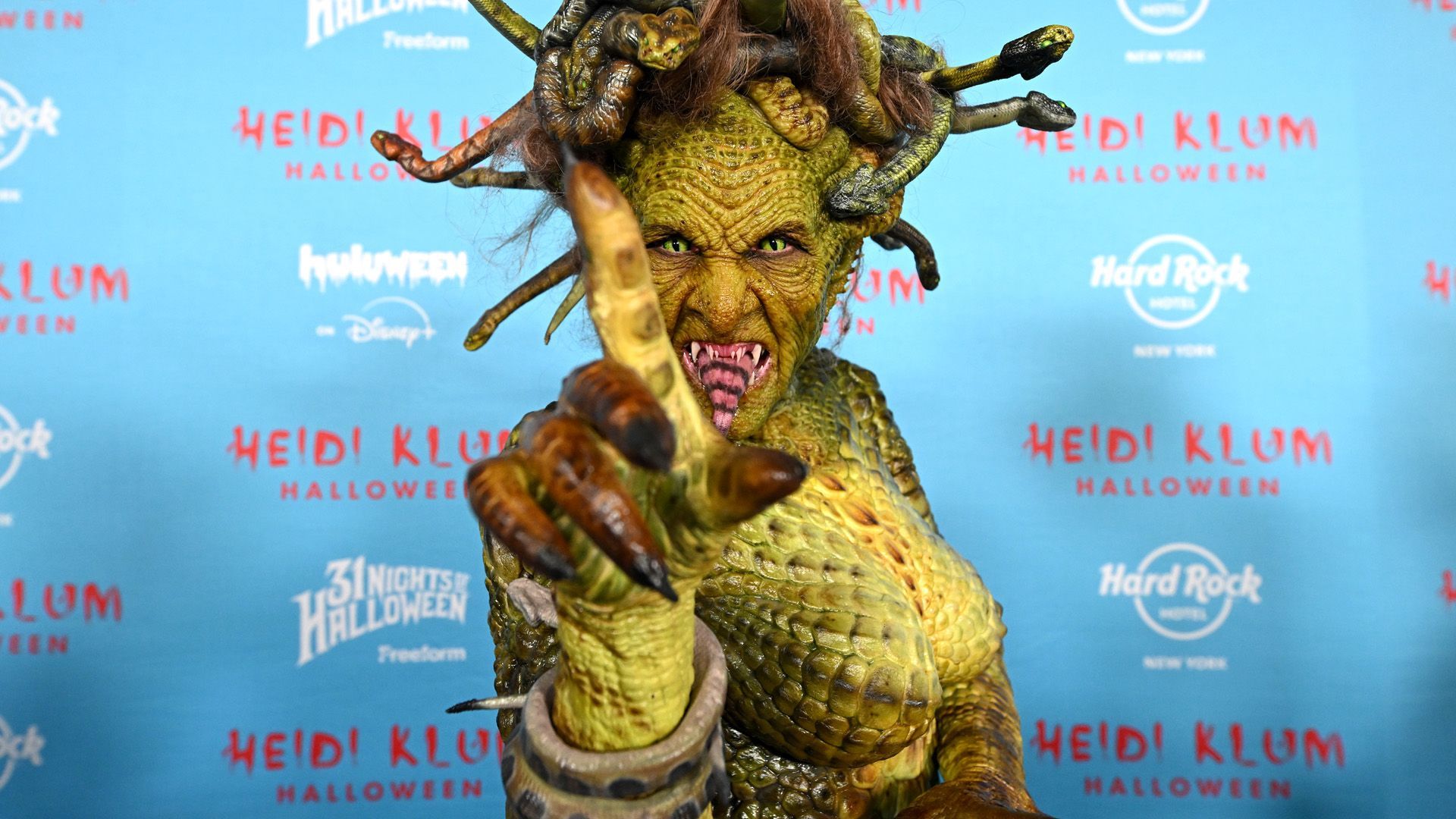 Heidi Klum sorgt mit ihrem Medusa-Kostüm für Aufsehen – inklusive goldener Haut und Schlangenhaar. Bei ihrer legendären Halloween-Party in New York trumpfen auch die Stars groß auf. Von Bill Kaulitz als Sailormoon bis Ariana Madix im Lady-Gaga-Look ist alles dabei. Welche Verwandlung begeistert dich am meisten?