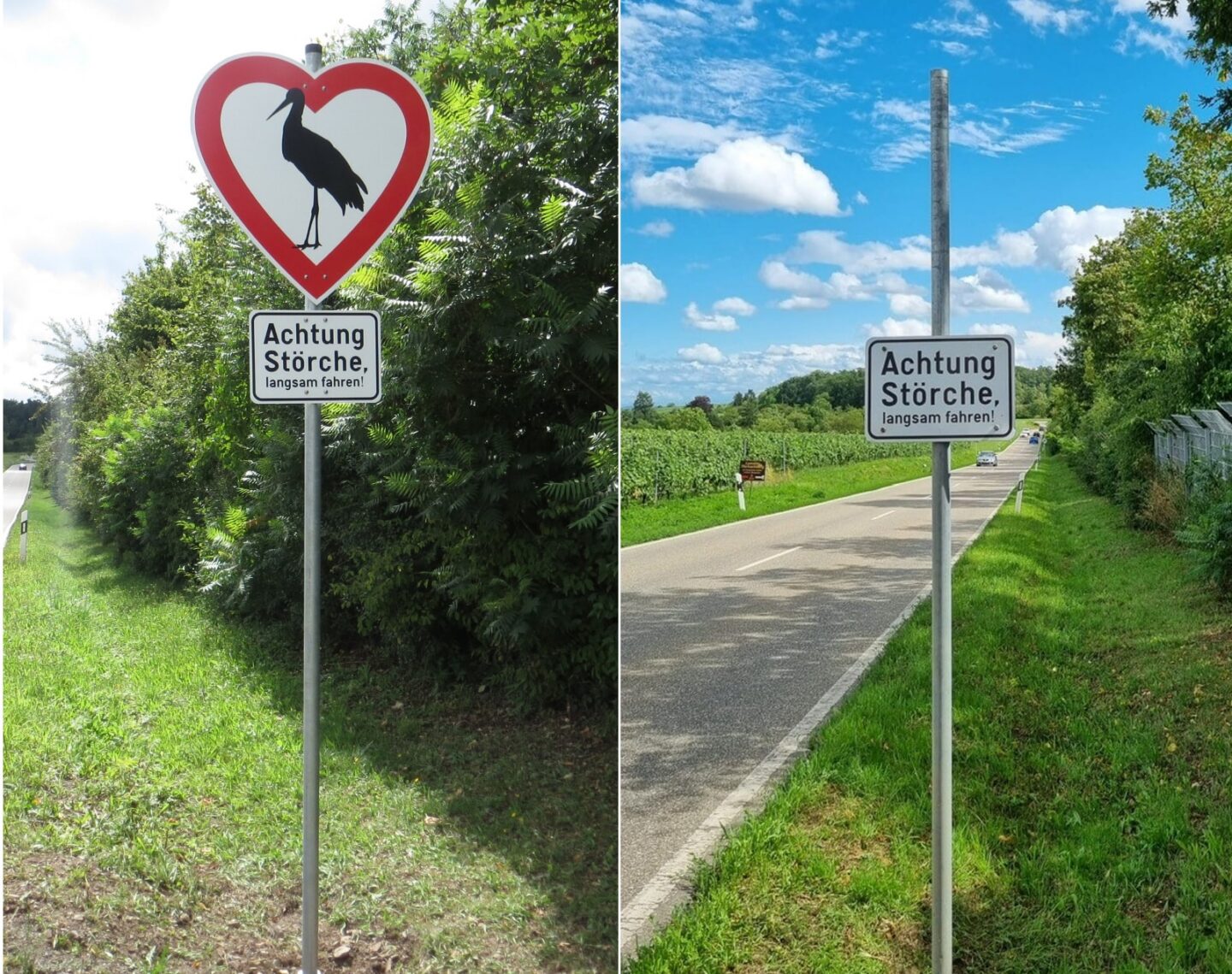Man könnte meinen, es handelt sich um einen harmlosen Streich. Doch die Schilder haben einen wichtigen Zweck: Sie schützen die freilebenden Weißstörche, die in der Region heimisch sind. Ohne diese Hinweise sind die eleganten Tiere in Gefahr, von ahnungslosen Autofahrern überfahren zu werden.