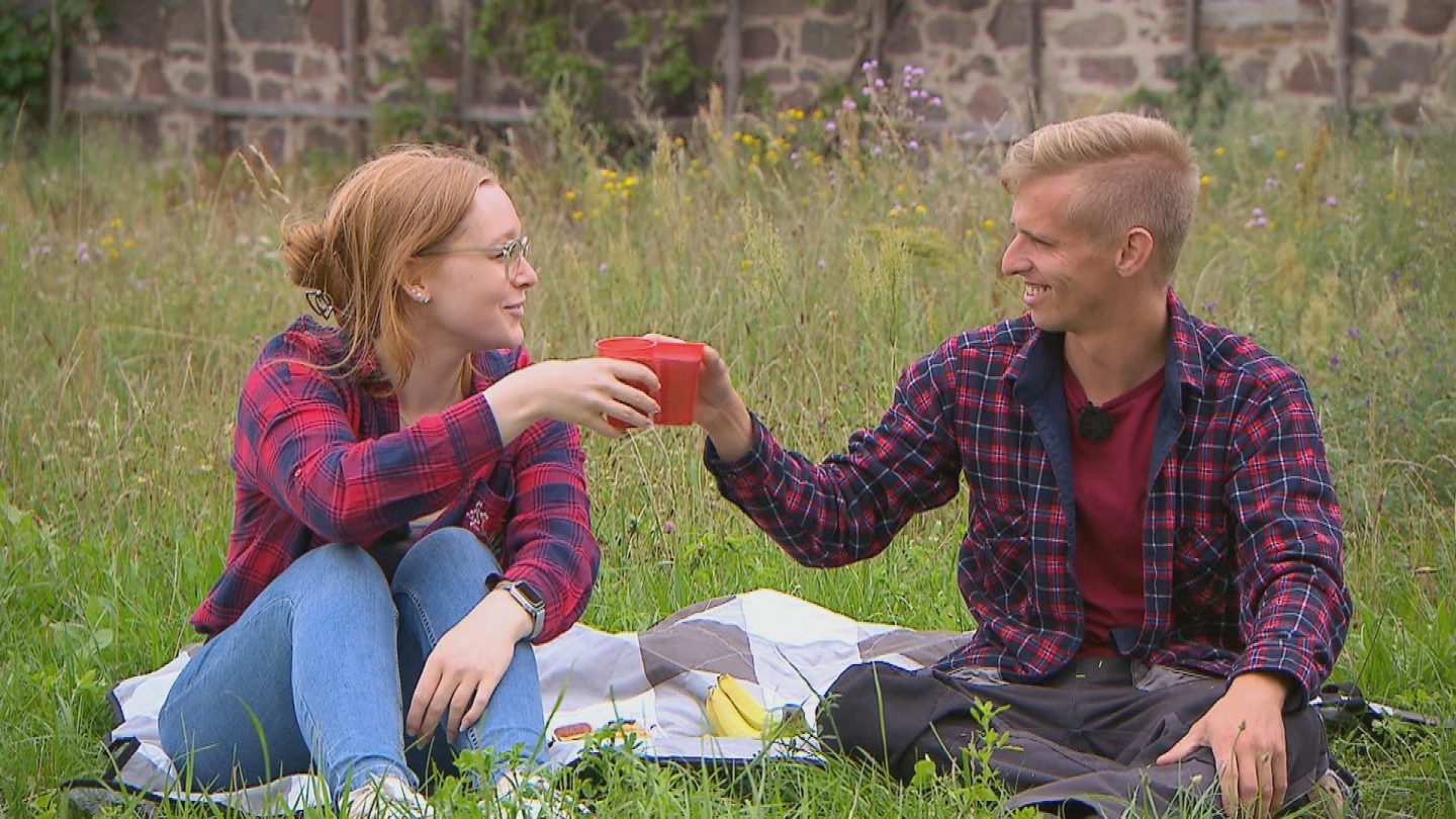 Bei einer Pause reden Pauline und Christopher über die Zukunft,+++ Die Verwendung des sendungsbezogenen Materials ist nur mit dem Hinweis und Verlinkung auf RTL+ gestattet. +++