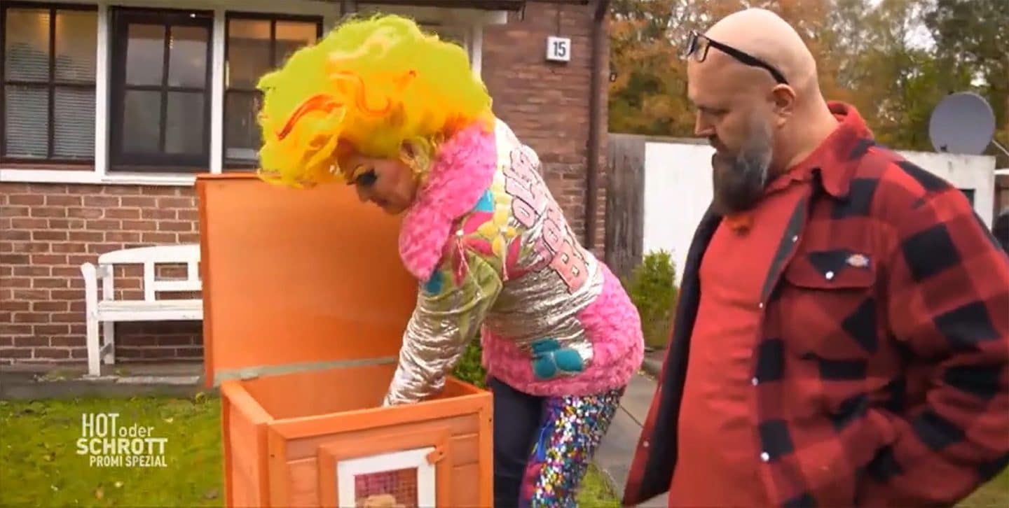 Olivia Jones und Dennis Schmidt testen den „Animal Cage“. +++ Die Verwendung des sendungsbezogenen Materials ist nur mit dem Hinweis und Verlinkung auf RTL+ gestattet. +++