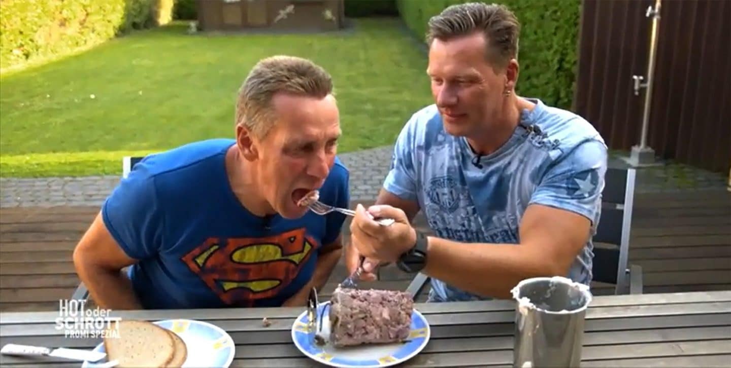 Jürgen Milski (l.) und Peter Milski testen den „Ham Cooker“. +++ Die Verwendung des sendungsbezogenen Materials ist nur mit dem Hinweis und Verlinkung auf RTL+ gestattet. +++