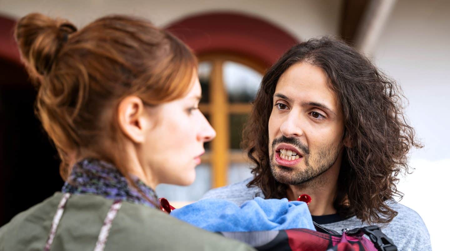 SWR DIE FALLERS – DIE SWR SCHWARZWALDSERIE, FOLGE 1270, „Entgleist“, am Sonntag (28.09.25) um 19:15 Uhr im SWR. Albert (Alessio Hirschkorn, r.) erfährt von Celines (Ana-Carolina Kleine, l.) Ausrutscher mit Dr. Schröder. © SWR/Patricia Neligan, honorarfrei – Verwendung gemäß der AGB im engen inhaltlichen, redaktionellen Zusammenhang mit genannter SWR-Sendung bei Nennung „Bild: SWR/Patricia Neligan“ (S2). SWR Presse/Bildkommunikation, Baden-Baden, Tel: 07221/929-24429, [email protected]
