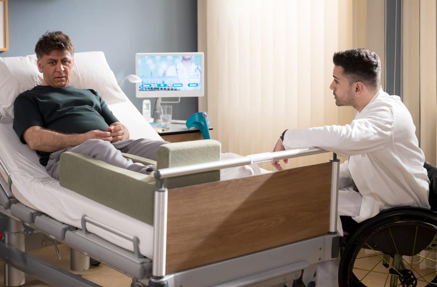 ARD/MDR IN ALLER FREUNDSCHAFT (1115), „Rückwärtsgang“, am Dienstag (25.11.25) um 21:00 Uhr im ERSTEN. Dr. Ilay Demir (Tan Caglar, re.) hat in seinem Auto zwei kleine Luftballons gefunden und sein Schrauber Sascha Keiler (Cem Ali Gültekin, li.) liegt nach einem Zusammenbruch in der Klinik. Nun gilt es herauszufinden, ob das eine mit dem anderen etwas zu tun hat. © MDR/Rudolf Wernicke, honorarfrei – Verwendung gemäß der AGB im engen inhaltlichen, redaktionellen Zusammenhang mit genannter MDR-Sendung bei Nennung „Bild: MDR/Rudolf Wernicke“ (S2+). MDR/HA Kommunikation, 04360 Leipzig, Tel: (0341) 300 6477 oder – 6463