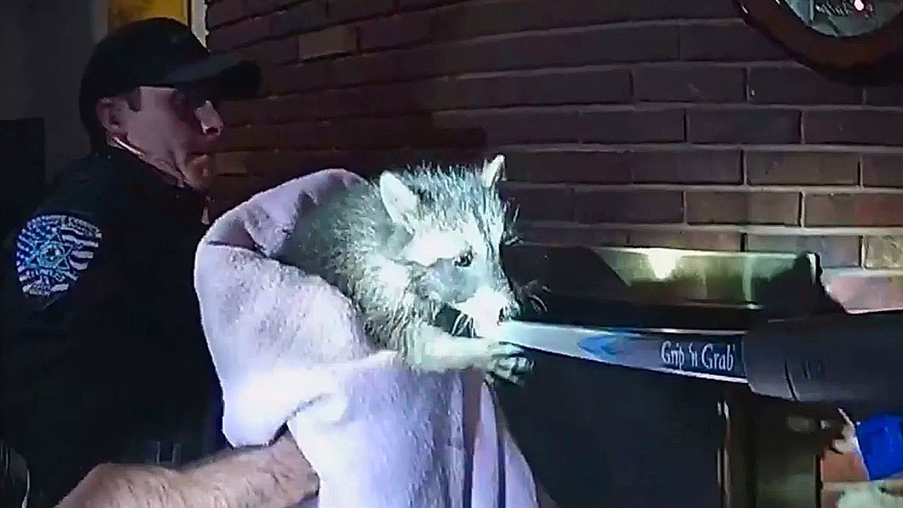 In Centennial im US-Bundesstaat Colorado rückten Polizisten zu einer besonderen Rettungsaktion an. Ein Waschbär war in einen Kamin gefallen und traute sich nicht hinaus.
