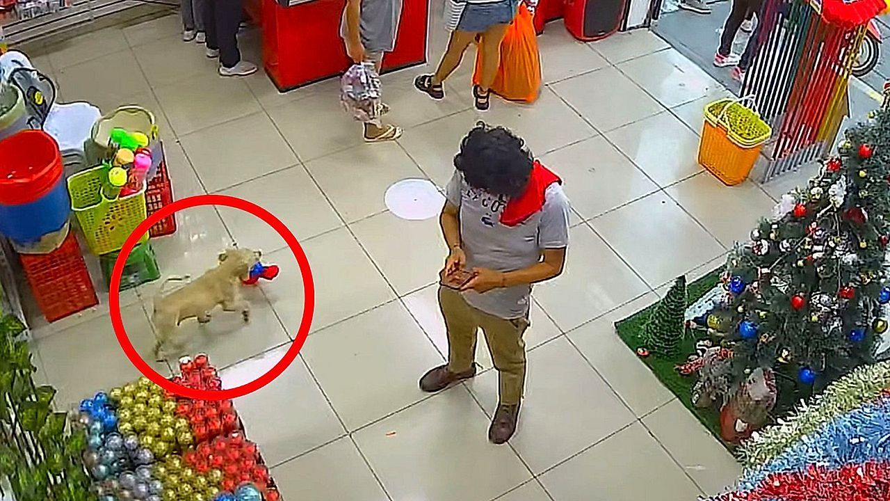 In Ayacucho in Peru folgte ein Hund zwei Kindern in ein Geschäft – und nutzte prompt seine Chance: Als eines der Kinder ein Spider-Man-Spielzeug fallen ließ, schlug der diebische Vierbeiner eiskalt zu.