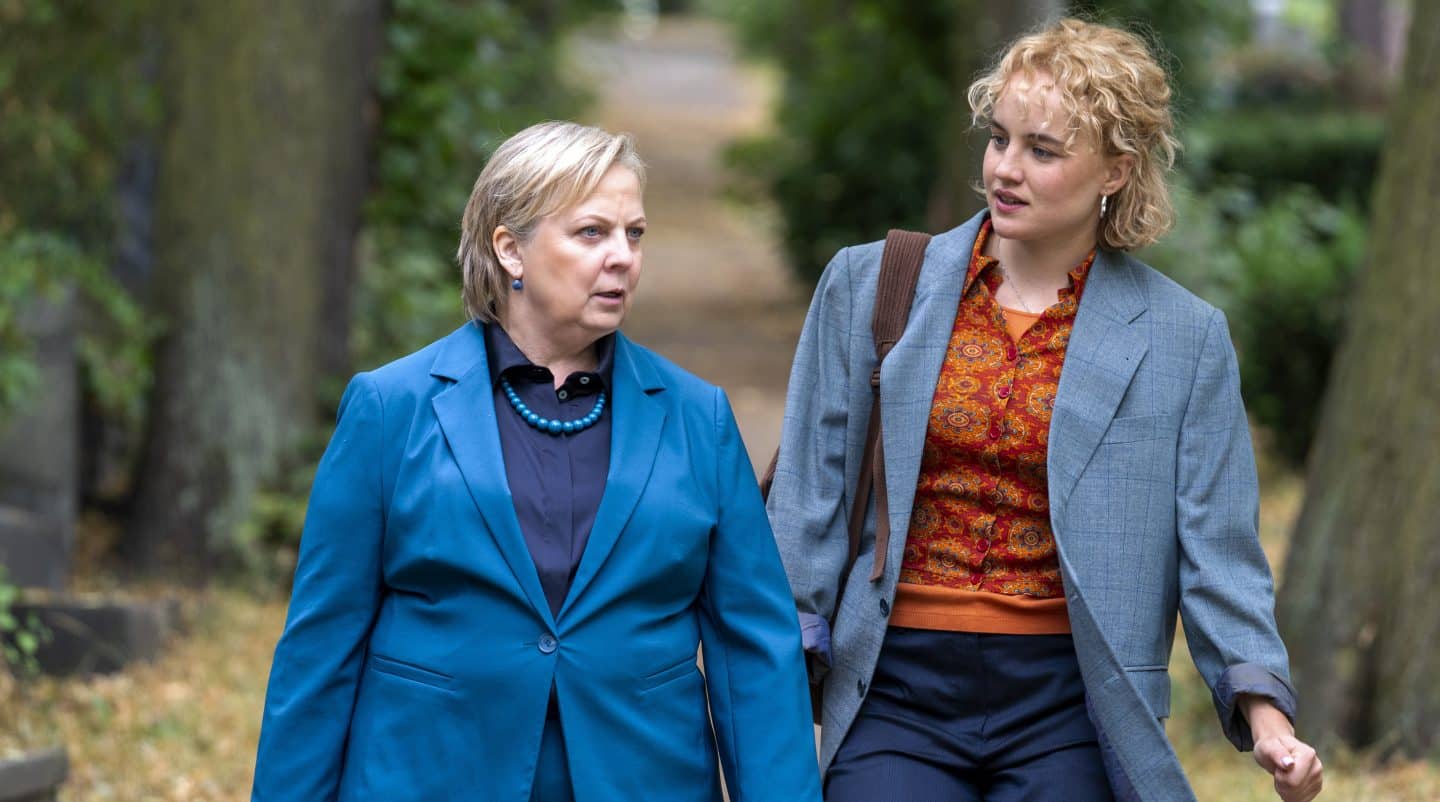 ARD Degeto KANZLEI LIEBLING KREUZBERG – NACHBARSCHAFTSHILFE, am Freitag (28.11.25) um 20:15 Uhr und um 01:25 Uhr im ERSTEN, online first ab Mittwoch (19.11.25) in der ARD MEDIATHEK Erika Hagenbuch (Cornelia Heyse, re.) stellt sich Lisa (Luise von Finckh, li.) als alte Klientin ihres Großvaters vor. © ARD Degeto Film/Oliver Feist, honorarfrei – Verwendung gemäß der AGB im engen inhaltlichen, redaktionellen Zusammenhang mit genannter Degeto-Sendung und bei Nennung „Bild: ARD Degeto Film/Oliver Feist“ (S2+). ARD Degeto/Programmplanung und Presse, Tel: 069/1509-335, [email protected]