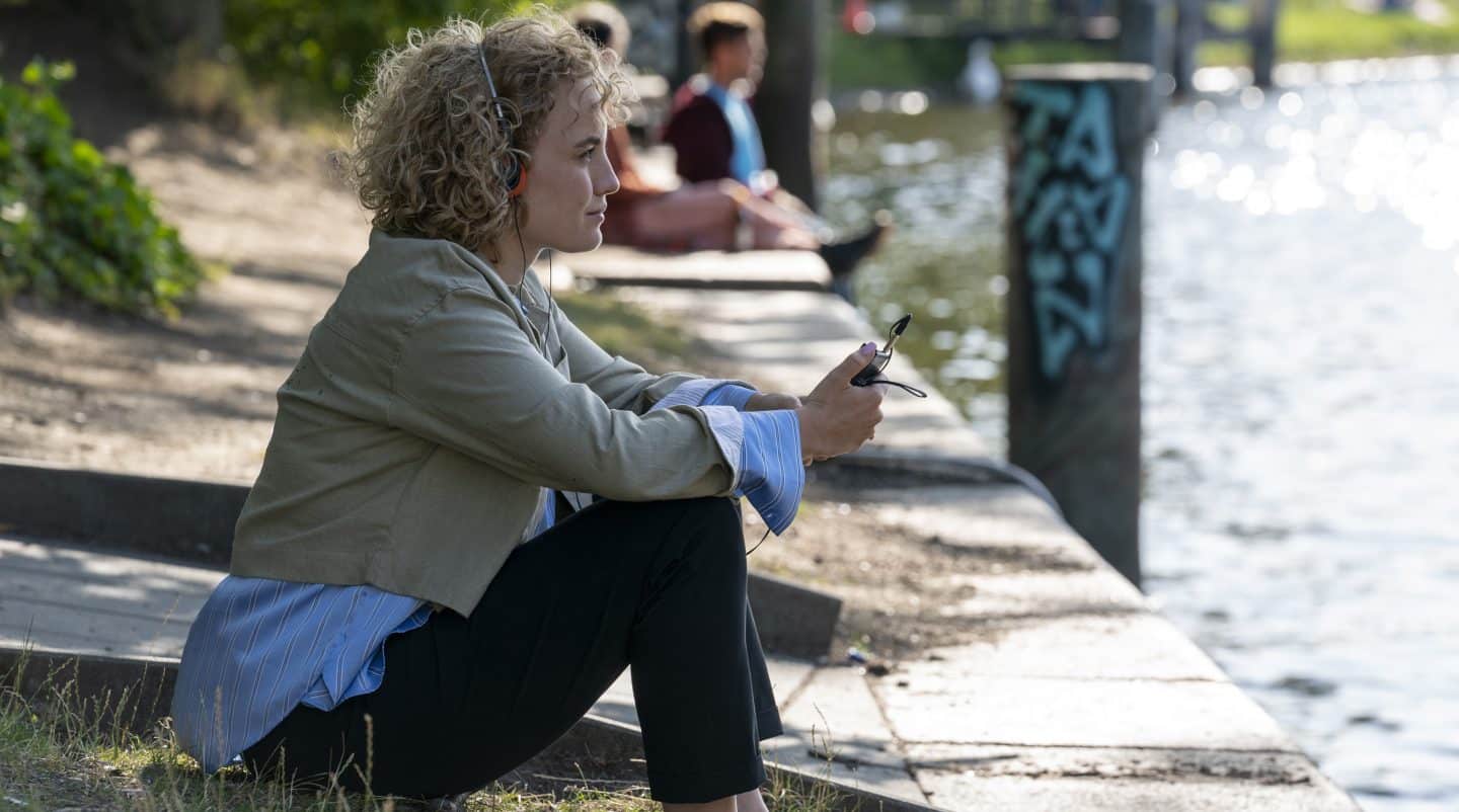 ARD Degeto KANZLEI LIEBLING KREUZBERG – NACHBARSCHAFTSHILFE, am Freitag (28.11.25) um 20:15 Uhr und um 01:25 Uhr im ERSTEN, online first ab Mittwoch (19.11.25) in der ARD MEDIATHEK Lisa (Luise von Finckh) hört sich alte Aufnahmen ihres Großvaters an. © ARD Degeto Film/Oliver Feist, honorarfrei – Verwendung gemäß der AGB im engen inhaltlichen, redaktionellen Zusammenhang mit genannter Degeto-Sendung und bei Nennung „Bild: ARD Degeto Film/Oliver Feist“ (S2+). ARD Degeto/Programmplanung und Presse, Tel: 069/1509-335, [email protected]
