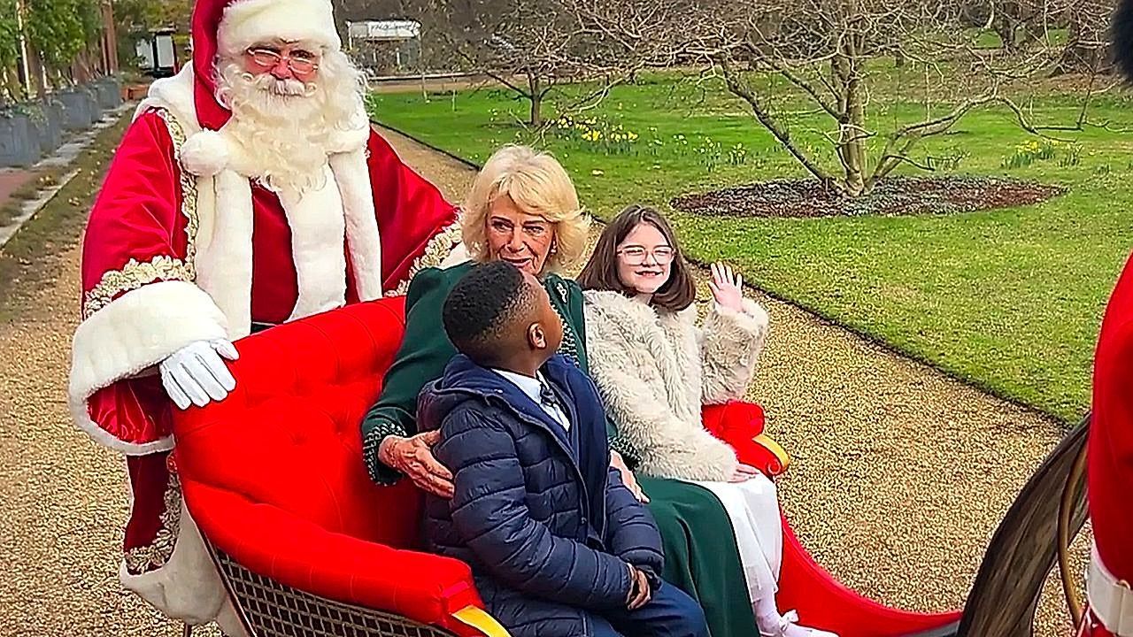 Königliche Auszeit vom Klinikalltag für kleine Patienten: Königin Camilla begrüßte am Donnerstag in ihrer Residenz Clarence House in London Kinder mit schweren Krankheiten – Weihnachtsmann, Rentiere und ein Schlitten sorgten für die richtige Stimmung.